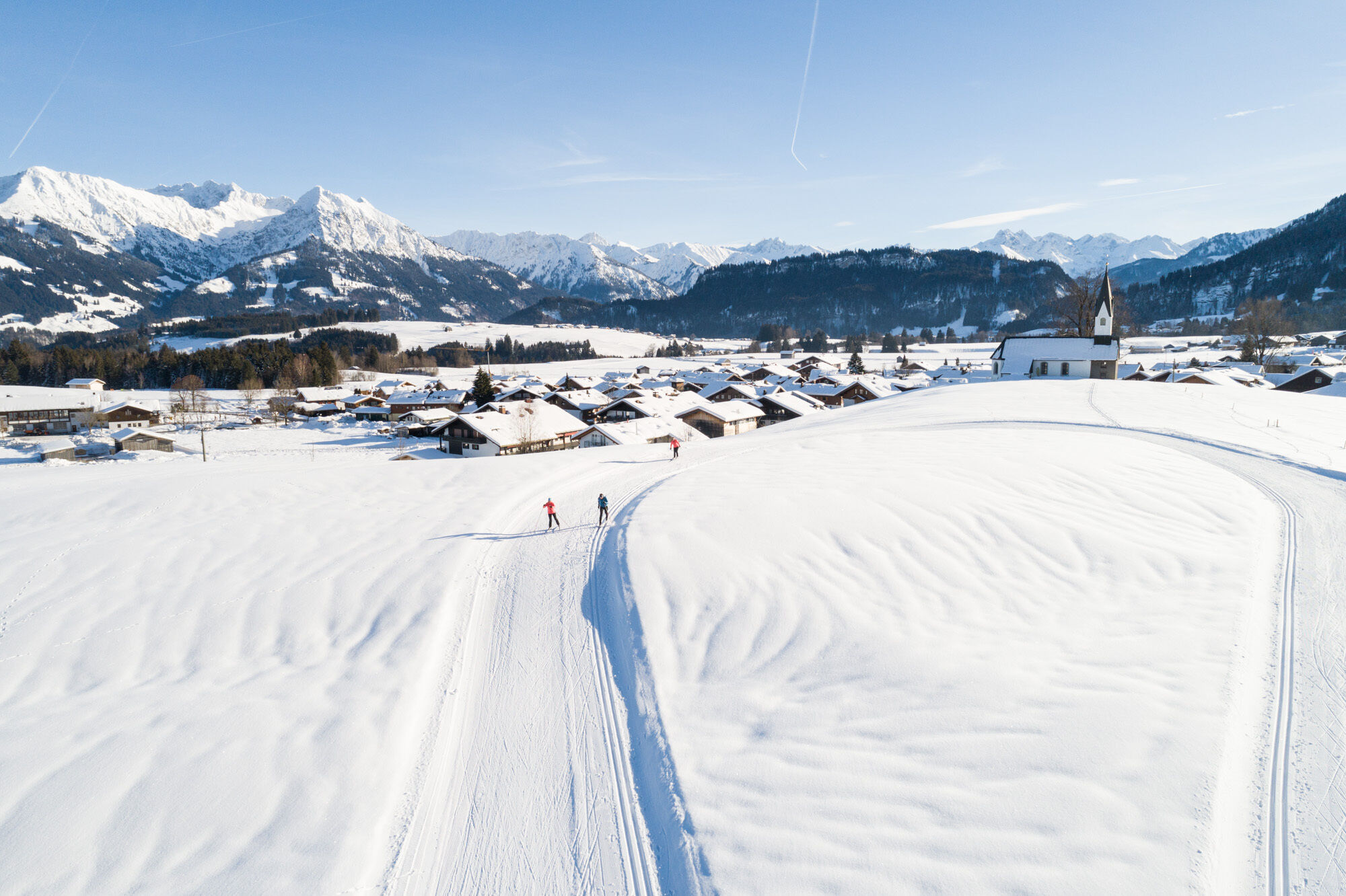 In den fünf Hörnerdörfern finden Sie über 110 km gespurte Loipen, diese sind durch die Orte Ofterschwang, Bolsterlang, Obermaiselstein und Fischen miteinander verbunden. Balderschwang, das fünfte Dorf der Hörnerkette, liegt im Balderschwanger Tal auf 1.044 m und bietet eine 45 km lange Grenzlandloipe zu Österreich.