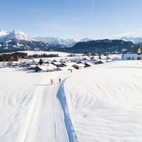 Kitzebichl Loipe: Genießen Sie den Panoramablick auf die Allgäuer Alpen auf der einfachen, 1,4 km langen Kitzebichlrunde.