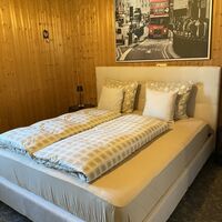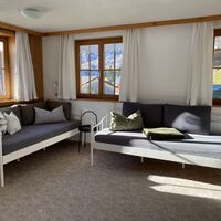 Unsere Ferienwohnung besteht aus einer großen Wohnküche (ca. 25m²), einem großen 4-Bettzimmer (ca. 25m²), einem Zimmer mit 2 Einzelbetten, einem weiteren Doppelzimmer, Bad mit Badewanne, extra WC und großzügigem Balkon/Schopf. Das ganze 1. OG (ca. 95m²) steht Ihnen zur Verfügung!