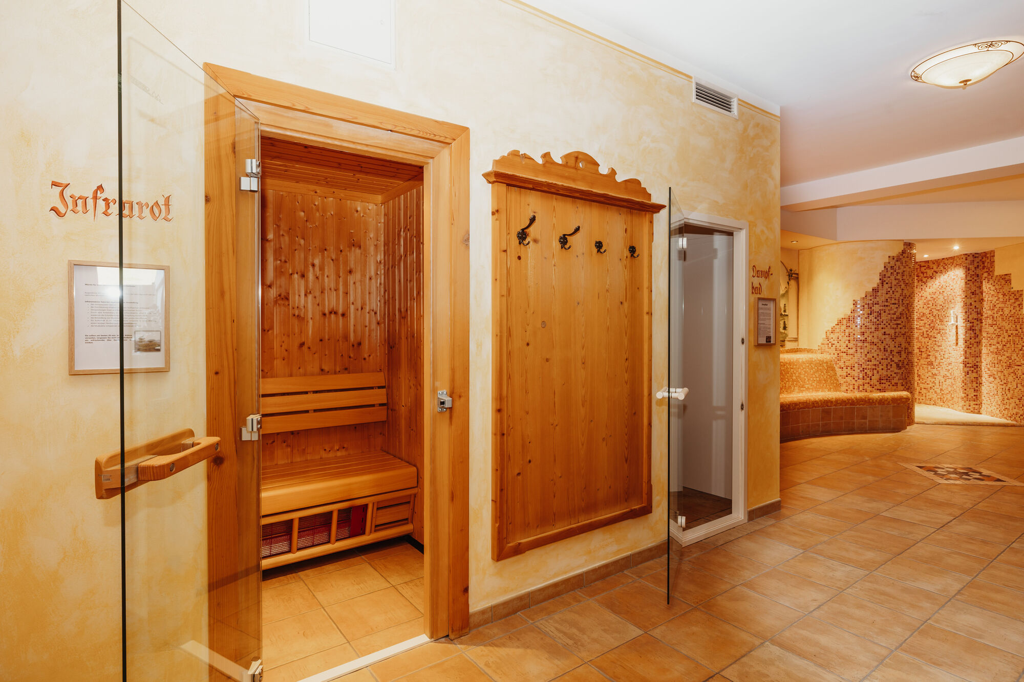 Nach einem erlebenisreichen Urlaubstag können Sie sich in unserer großzügigen Wellnesslandschaft erholen. Sie haben dabei die Wahl zwischen Sauna, Dampfsauna, Infrarotkabine oder unsere urige Blockhaussauna im Freien. Auf Wunsch werden gegen Aufpreis auch Massagen angeboten.