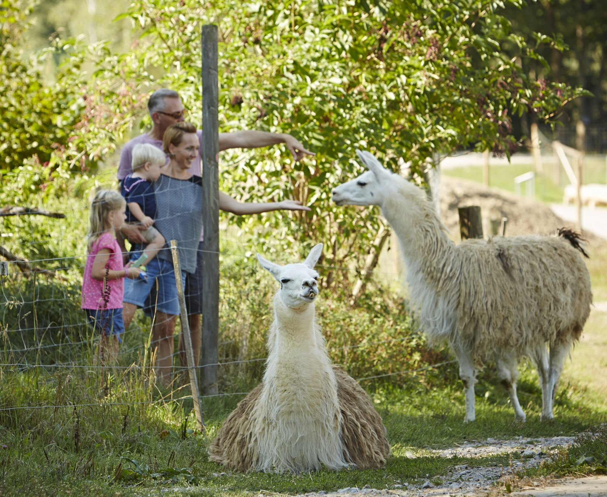 Mit Kinderwagen und Kinderfahrrad gut machbar, nur kurzer Abschnitt Wiesenweg. Zu beachten: Die Tiere dürfen nur mit dem speziellen Futter aus den Futterautomaten gefüttert werden. Futterautomaten gibt es beim Teich oder beim Kuhstall auf dem Erlebnisbauernhof.