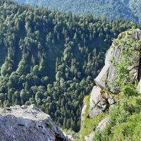Vom Wanderparkplatz Klamm starten wir nordwestwärts auf die Forststraße neben dem Schwarzenbach. Wir folgen der Forststraße mit mäßiger Steigung ca. eine Dreiviertelstunde lang und biegen dann rechts auf die steilere Forststraße ab. Nach weiteren 20 Minuten erreichen wir den Abzweig zum Leonhardstein auf der rechten Seite. Ab hier wird aus dem Wandern eher eine Kletterpartie bis zum Gipfel des Leonhardstein mit einer traumhaften Aussicht.