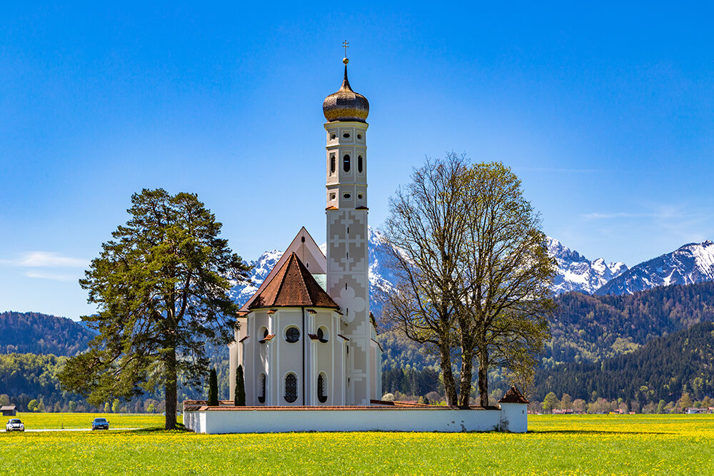 This circular route from the Tegelbergbahn cable car via St. Coloman's Church to Schwangau promises unique views of the Schwangau mountain scenery and the royal castles of Neuschwanstein and Hohenschwangau. The circular tour is particularly recommended for people with limited mobility and families. Benches at the church of St. Coloman and on the Deichelweg invite you to take a break and enjoy the beautiful views. The entire circular route is stepless. An accompanying person is recommended.