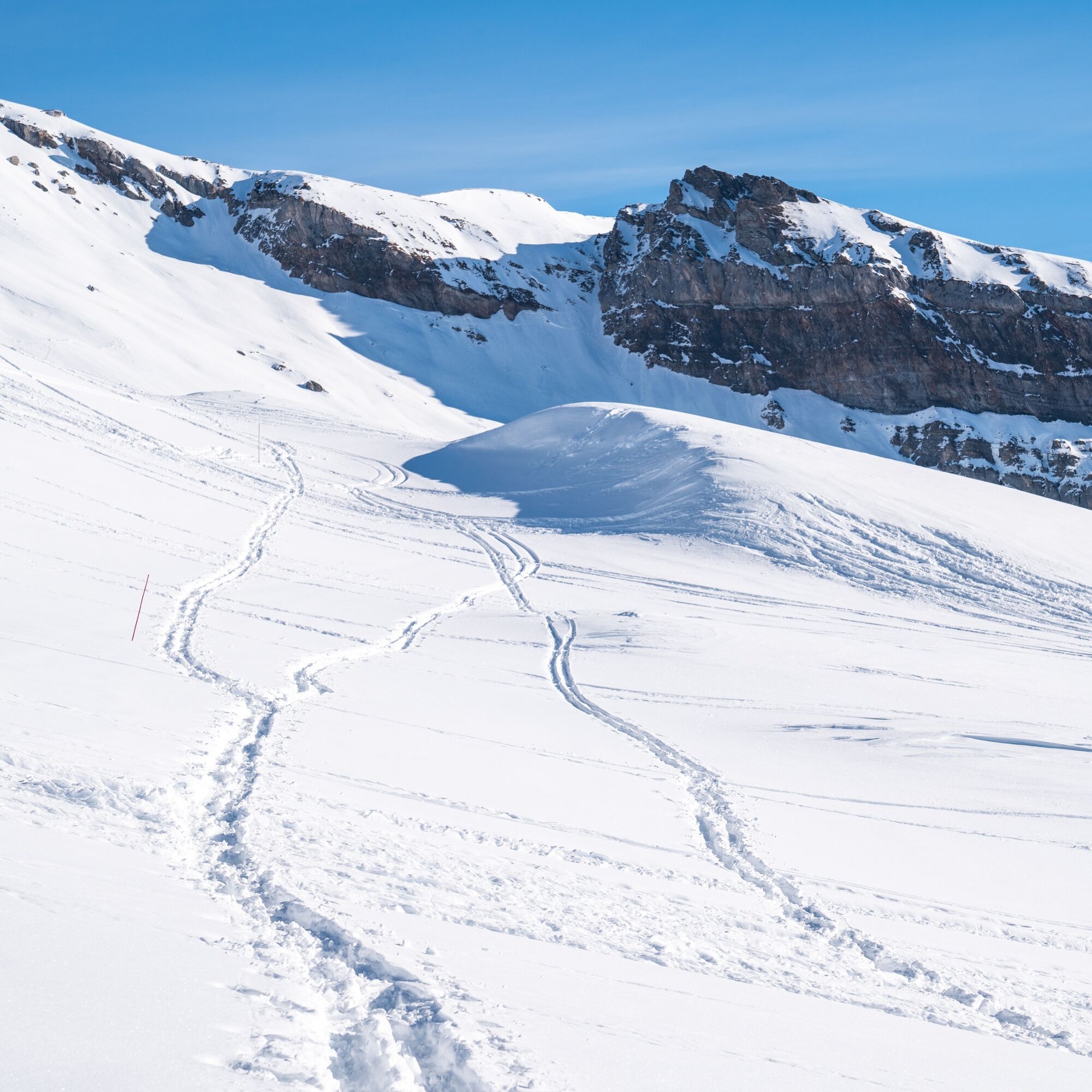 This snowshoe trail leads from the Nagens mountain station gently uphill to the Grauberg. Throughout the tour, you have a breathtaking panoramic view, especially of the impressive Tschingelhörner mountain range. These are not only part of the Sardona UNESCO World Heritage Site, but also bear witness to the formation of the Alps thousands of years ago.