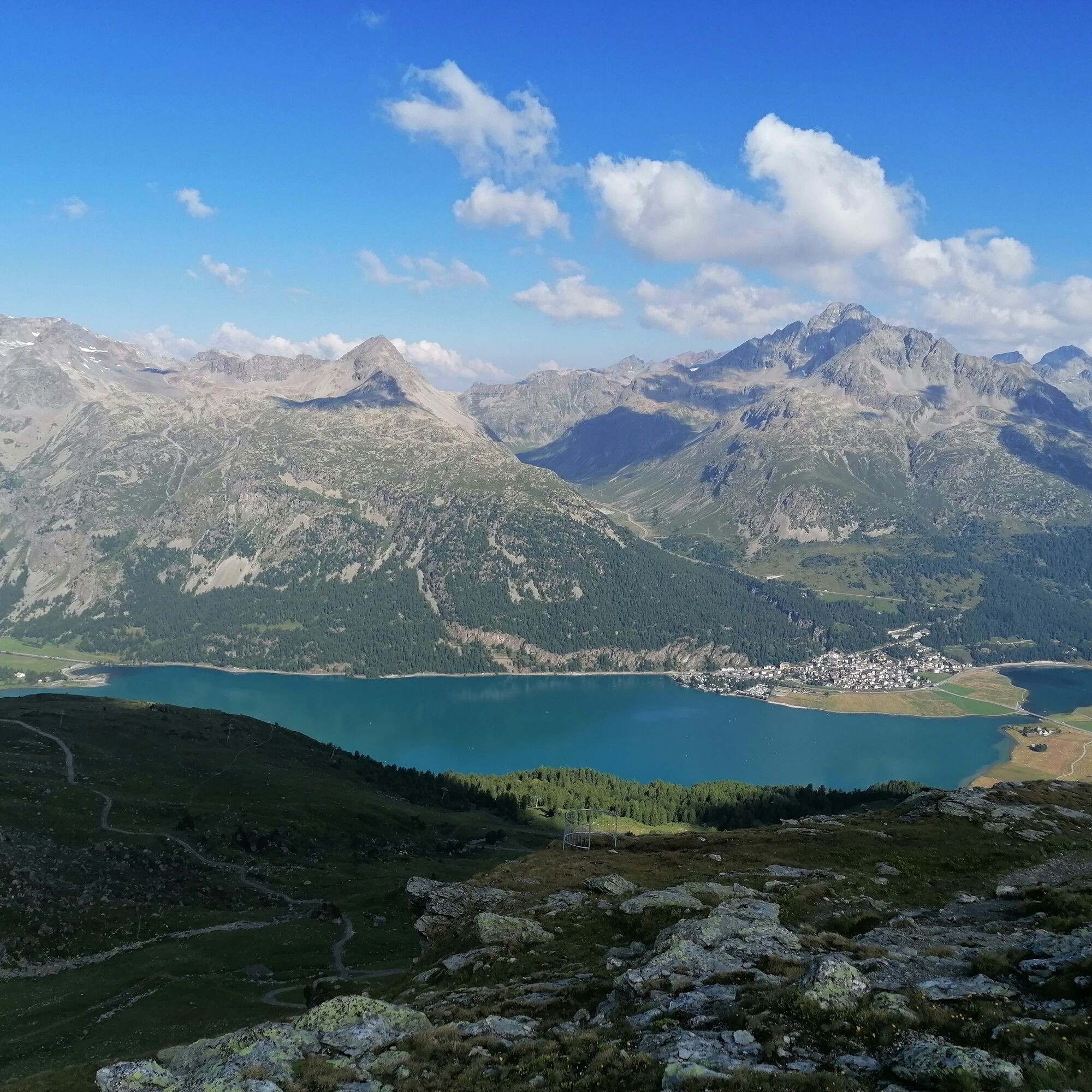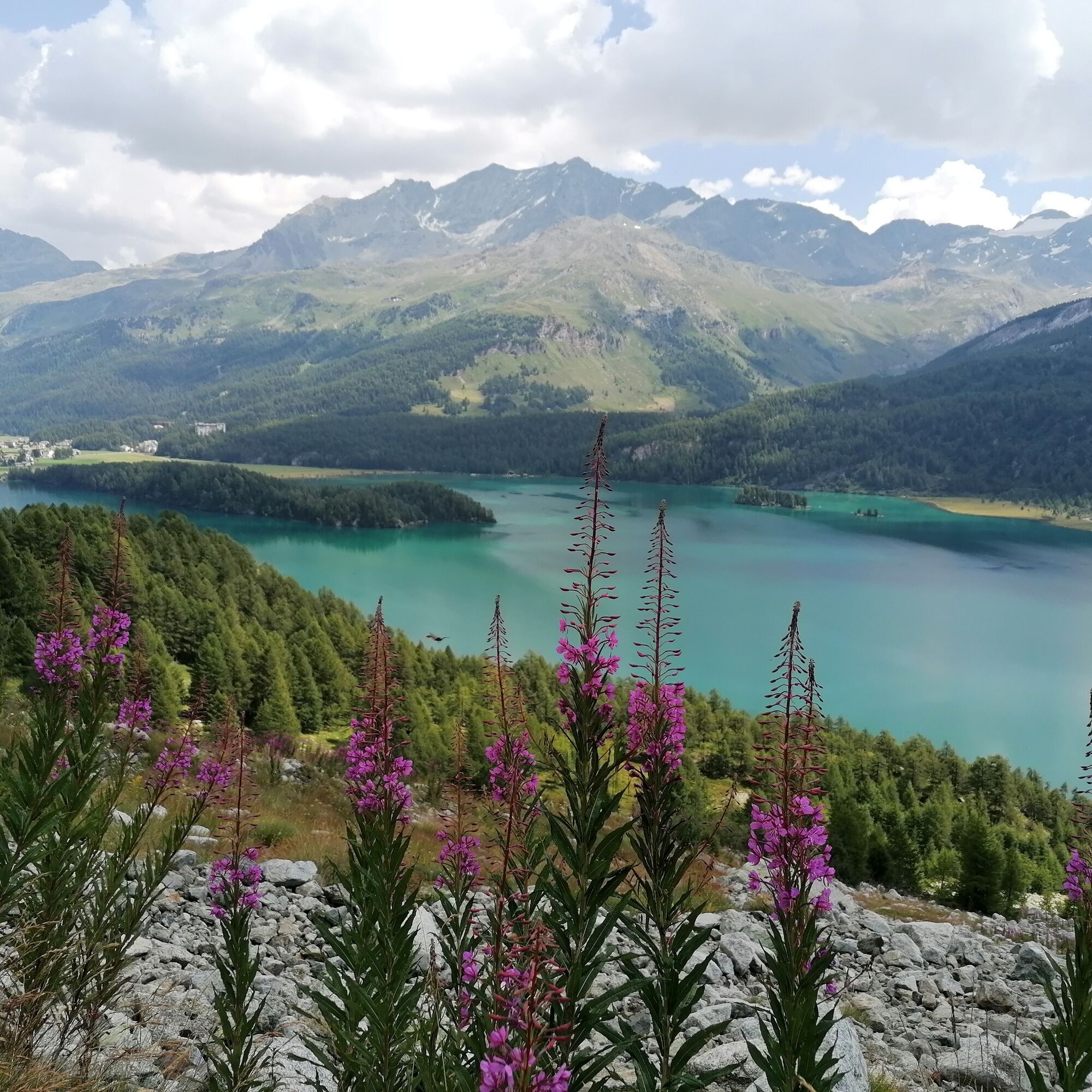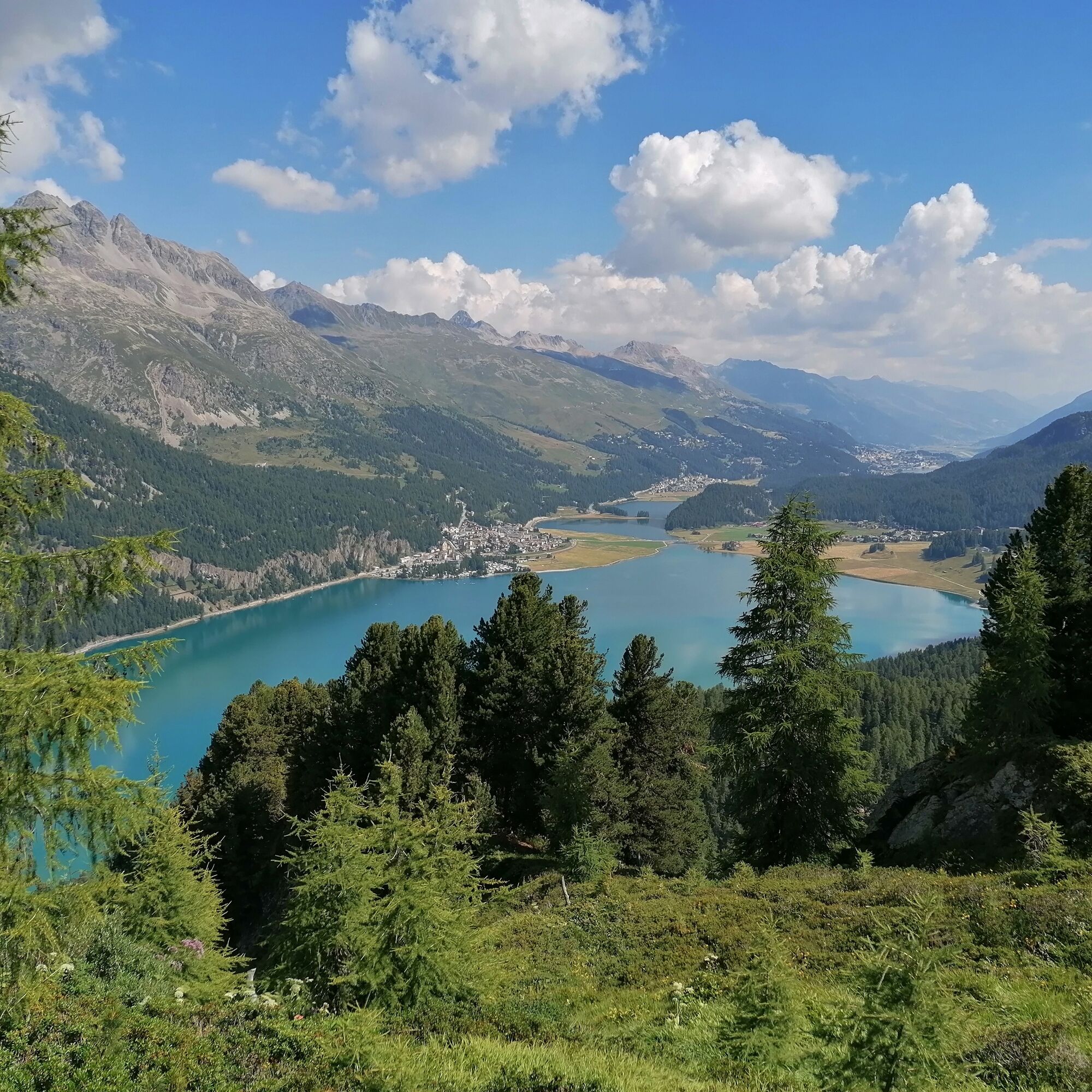 From Surlej, the Corvatsch cable car brings you back up to the middle station Murtèl where this stage begins. The path descends briefly but steeply before following along the slope over to Alp Prasüra while always providing a fantastic view of the blue lakes of the Upper Engadin. At Alp Prasüra the path then descends to the village of Sils passing many beautiful Engadin houses. At the church of San Lurench in Sils Baselgia, you cross the main road and follow the Via Engiadina first through a beautiful larch forest and then up to the viewpoint at Muotta. Here is a bench situated just right to take a break and enjoy the view from the Bergell granite mountains over to Muottas Muragl.