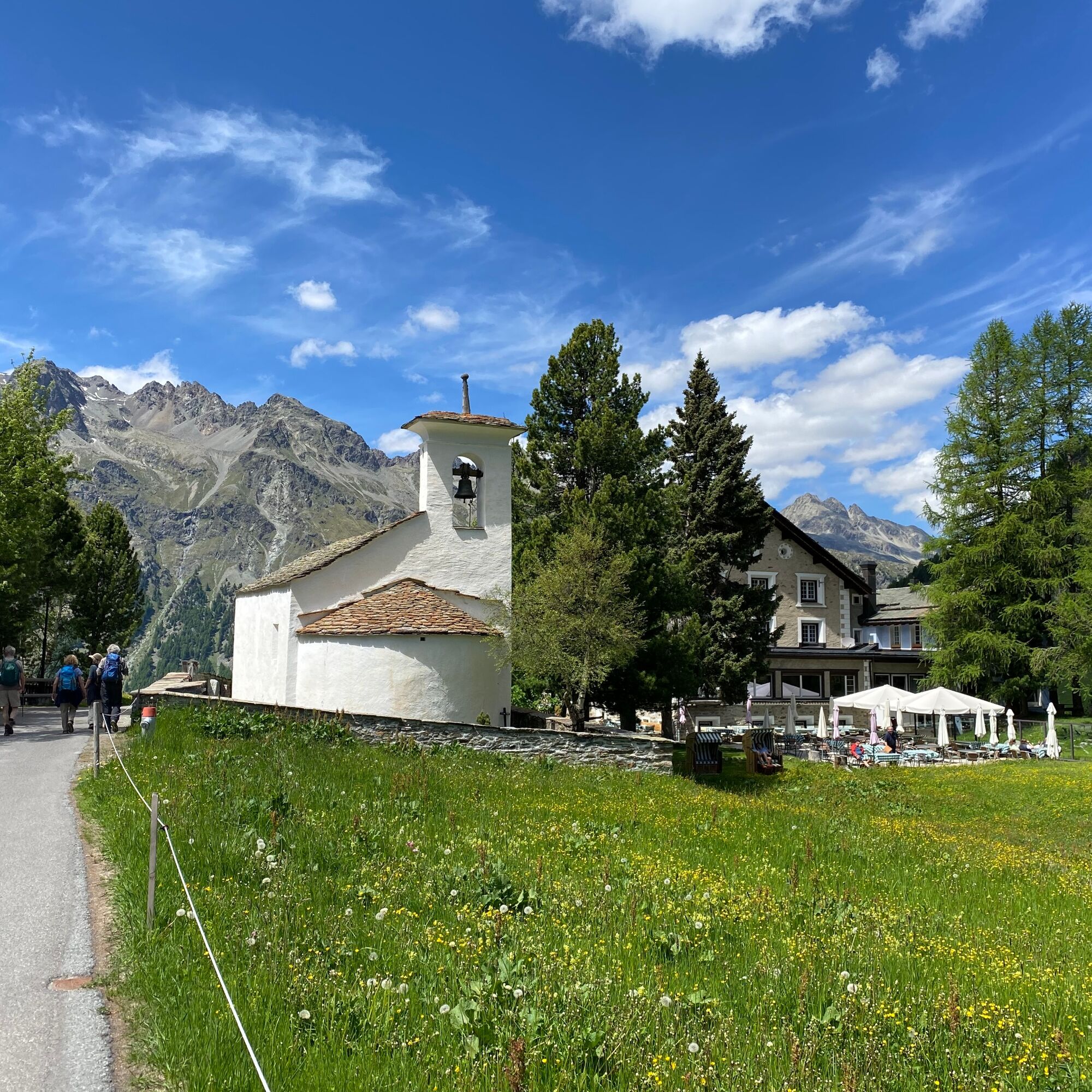 But you have to tear yourself away from the dream panorama – many delights await you! At the cable car ticket office in the valley, you received a voucher booklet that sets your hiking program: At the mountain restaurant La Chüdera, breakfast or a hearty starter awaits, the Hotel Sonne Fex conjures up the main course, and the Hotel Seraina in Sils Maria is responsible for dessert.