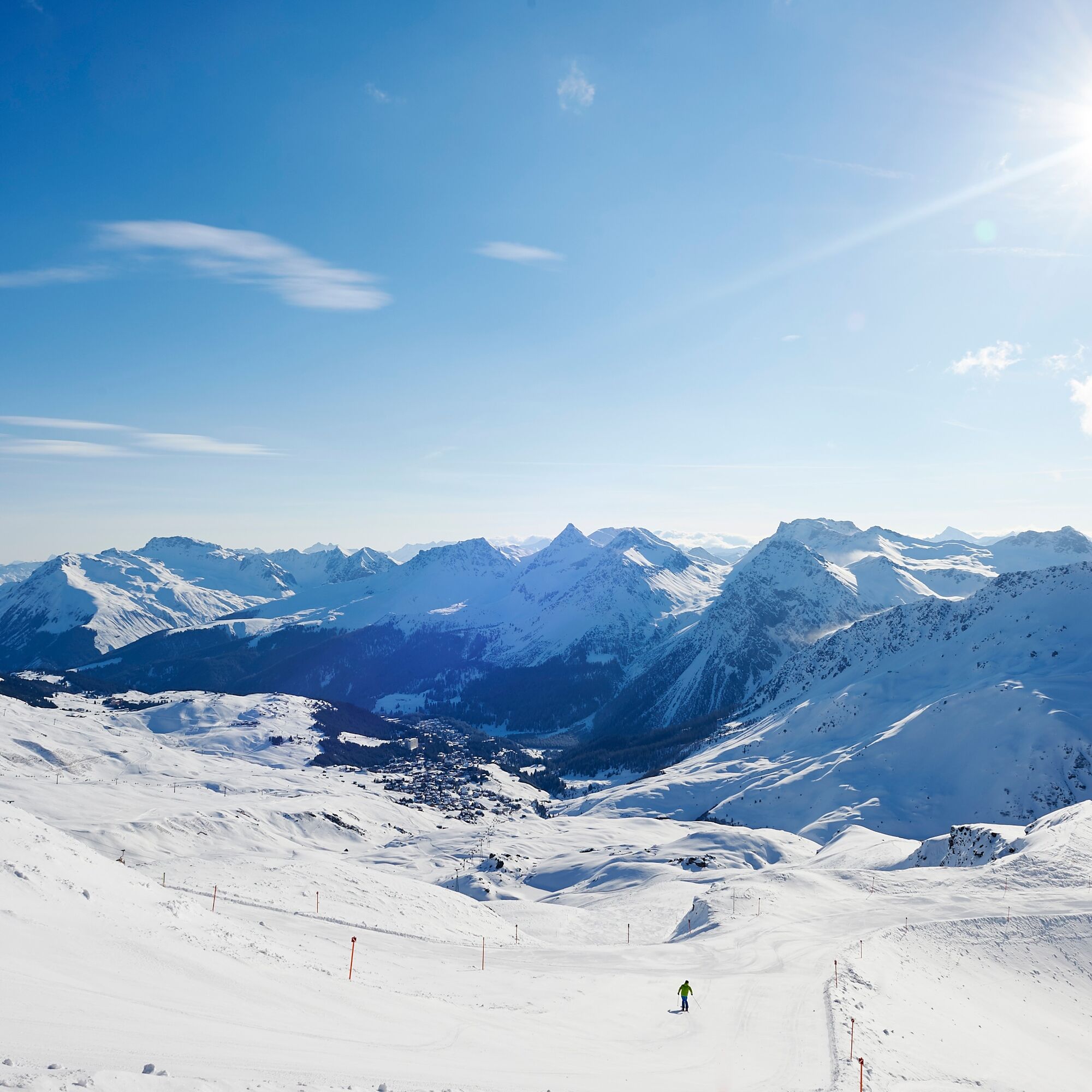 Take the Hörnli Express up to the Hörnli, where the hike starts in the middle of the Arosa Lenzerheide snow sports area, right by the Urden cable car. Enjoy the sun and the hustle and bustle of the skiers...