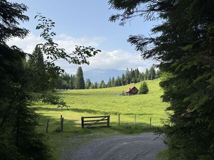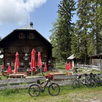 Vom Kurhotel dem als MTB-Route ausgeschilderte Forstweg zuerst entlang der Gössering., dann ansteigend zur Pfarreben. Dort links halten und weiter der Beschilderung folgend am Forstweg bis zur Hütte. Im...