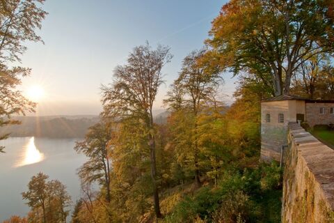 Just a stone's throw from here is the next castle on the route, Wernberg Castle. First documented in 1227, Wernberg Castle operates as a monastery. Here you'll find delicacies from own production, fine products from yogurt to homemade pasta and teas, which can be purchased at the monastery shop Monday through Saturday. The purchases fit well in your backpack, and after a snack at the monastery restaurant, you head to the next castle well fortified.