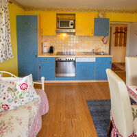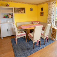 The spacious 4-room apartment Kaiserblick 1, suitable for 2–6 guests, is located in the quietly situated annexe and offers a unique panoramic view of the Wilder Kaiser. The apartment features a cosy kitchen-living area with a large, inviting seating corner – perfect for shared meals and relaxed evenings. Two generously sized bedrooms provide plenty of space and comfort, and there is also a lovingly designed children’s room with bunk beds.