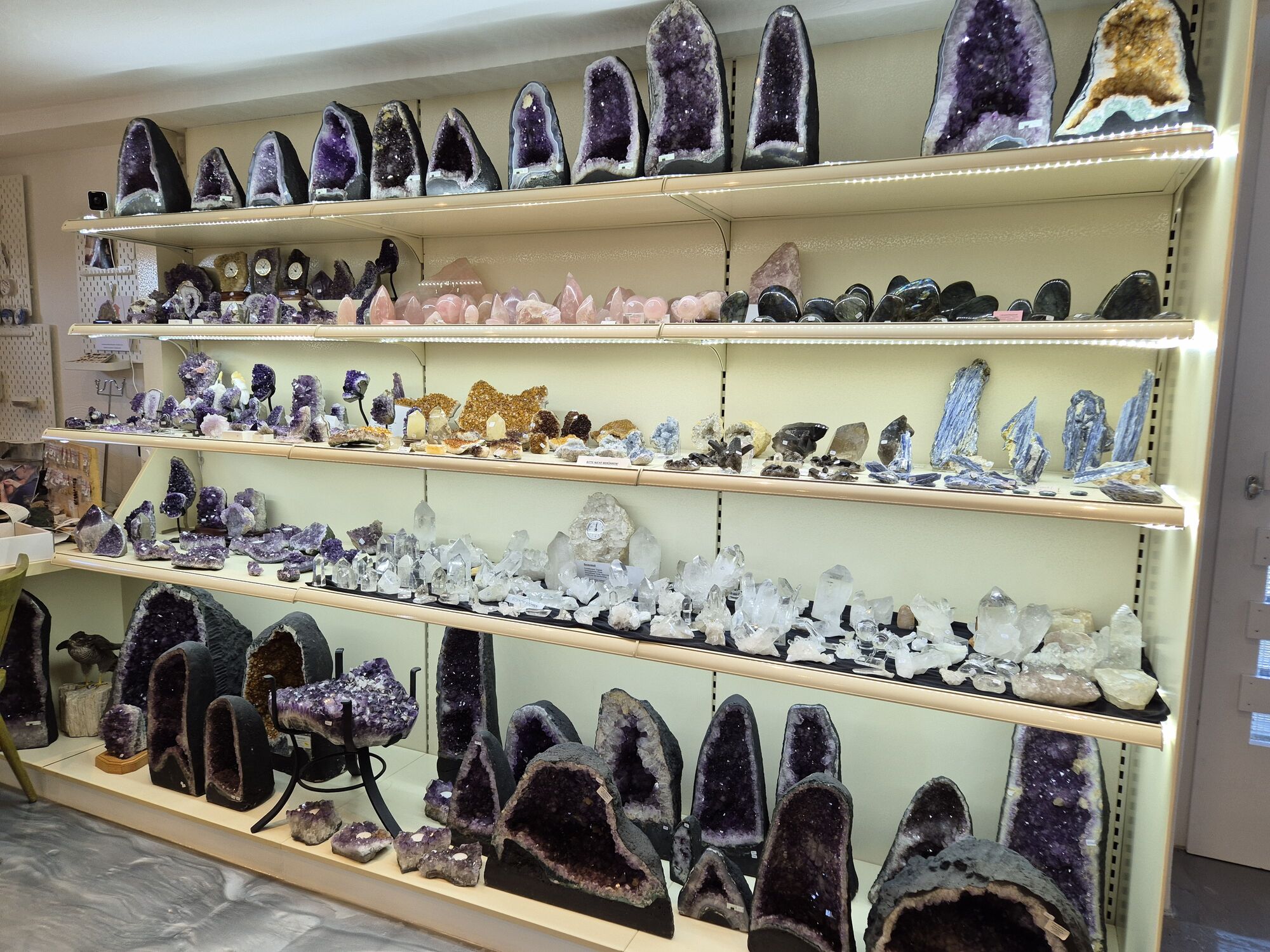 Through our travels to Brazil, you can also admire beautiful amethyst druses, large rock crystals and citrines, which we have brought directly from Brazil, and also purchase.