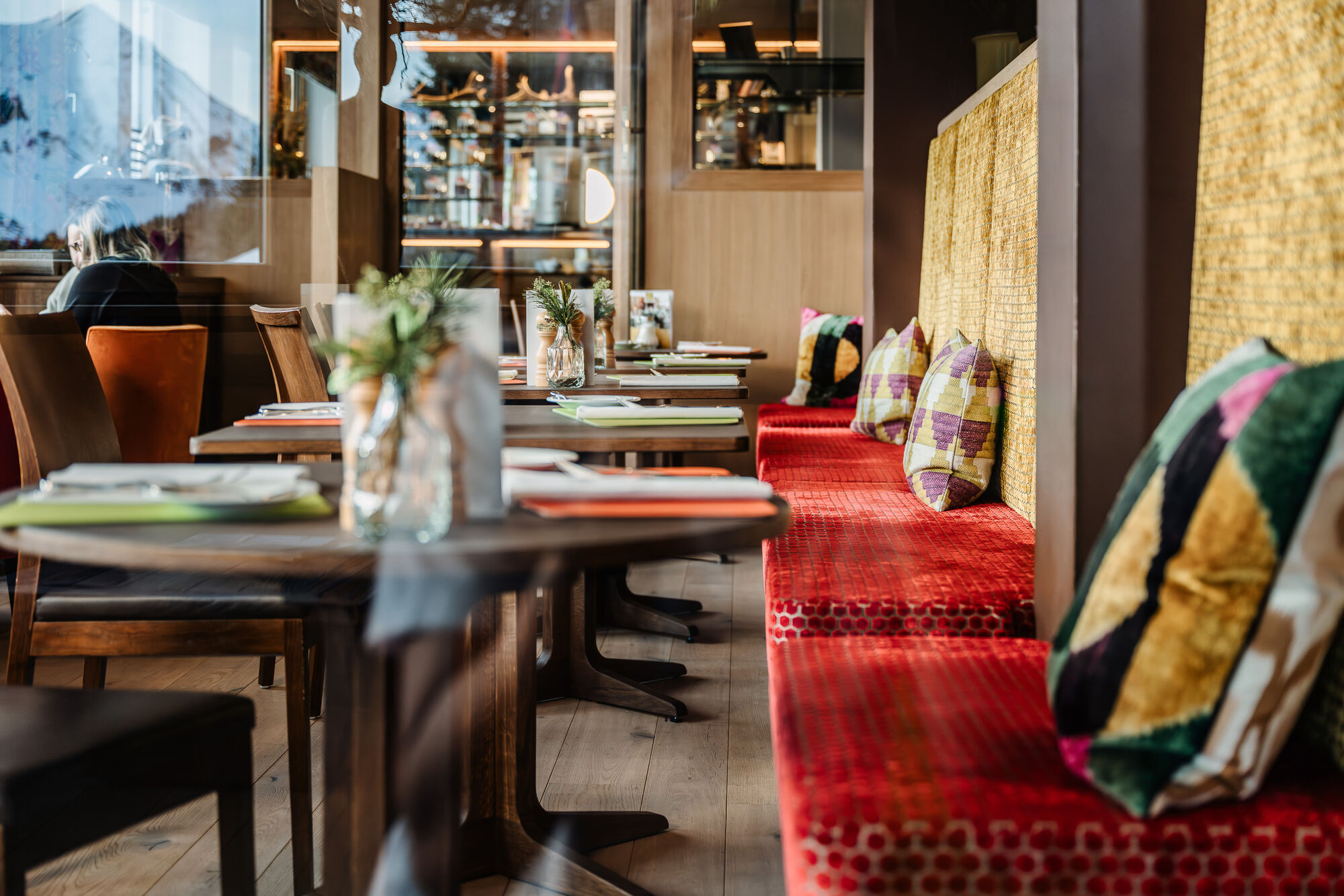 •In the evening, our varied 5-course menu of choice (classic, alkaline or ketogenic) from our natural alpine cuisine or a selection from our Dirndlstüberl menu (Austrian specialities) as well as vegan and vegetarian dishes.