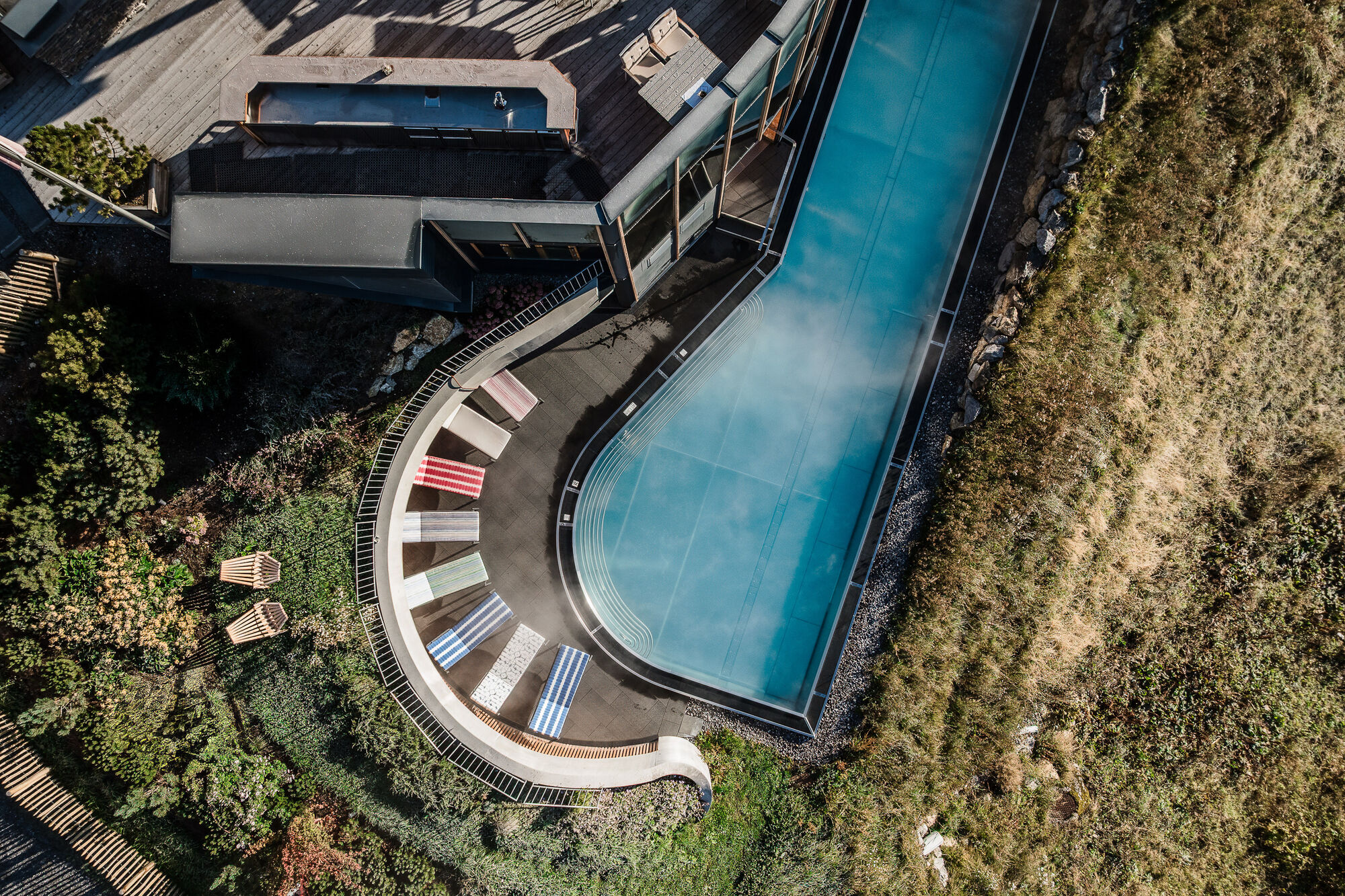 •Free use of our Alpin Spa with activity and reactivation area, indoor and outdoor panoramic pool, whirlinfinity-pool, spacious saunas, fitness area, yoga and meditation area, relaxation rooms with mountain views, treatment rooms for individual treatments