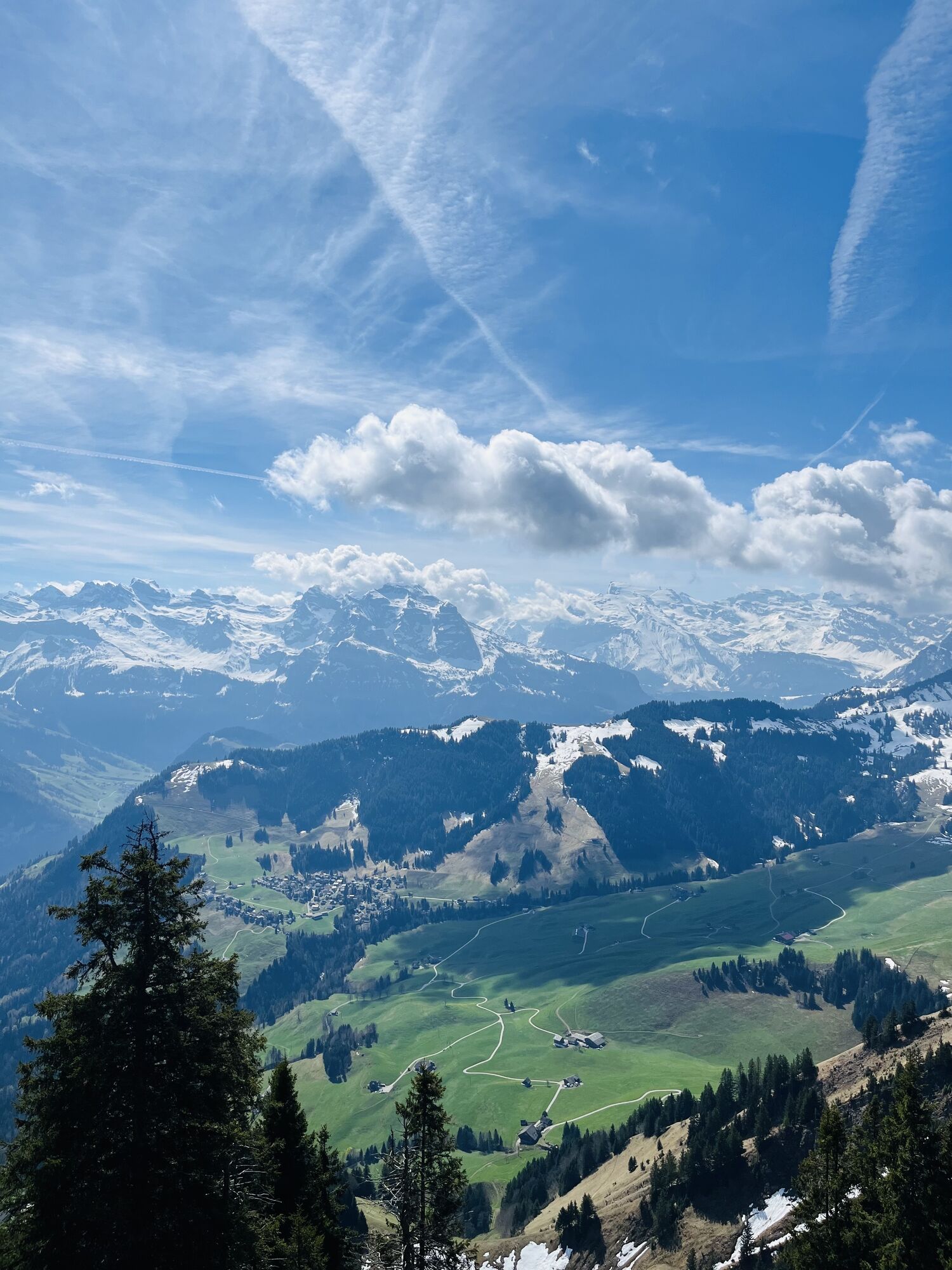 Anschliessend führt ein Zickzackweg durch den Wald hinauf zum Schluchigrat. Hier beginnt ein besonders schöner Abschnitt der Wanderung. Während etwa einer halben Stunde folgt der Weg dem Grat. Die Aussicht reicht weit bis zu den hohen Gipfeln des Berner Oberlands.