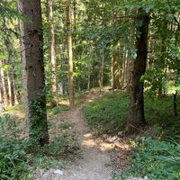 The moderately difficult S1 singletrail leads varied from the Draxelhofer Anhöhe down 250 vertical meters to the aqueduct near Schauching. The ground is mostly earthy forest soil with some roots and stones....
