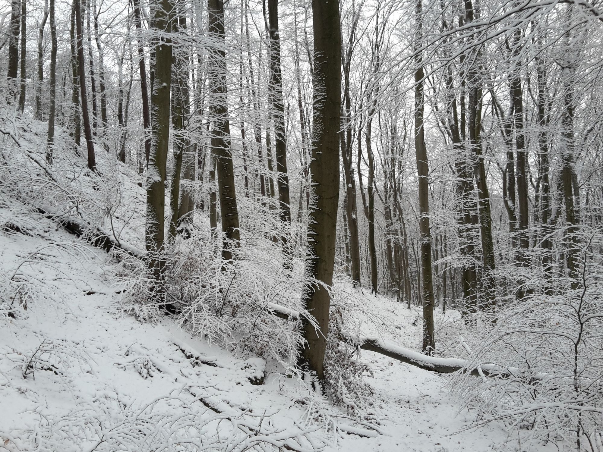 Zurück wieder quer durch den Wald zuerst leicht ansteigend dann leicht zur Landesstraße 2010 hin abfallend.