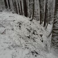 Der Zugangswaldweg (Traktorweg) ist entlang des Waldweges etwas nach unten im Halbbogen links herum am Berghang führend (zuerst in nördl. dann in nordwestlicher Richtung).