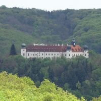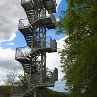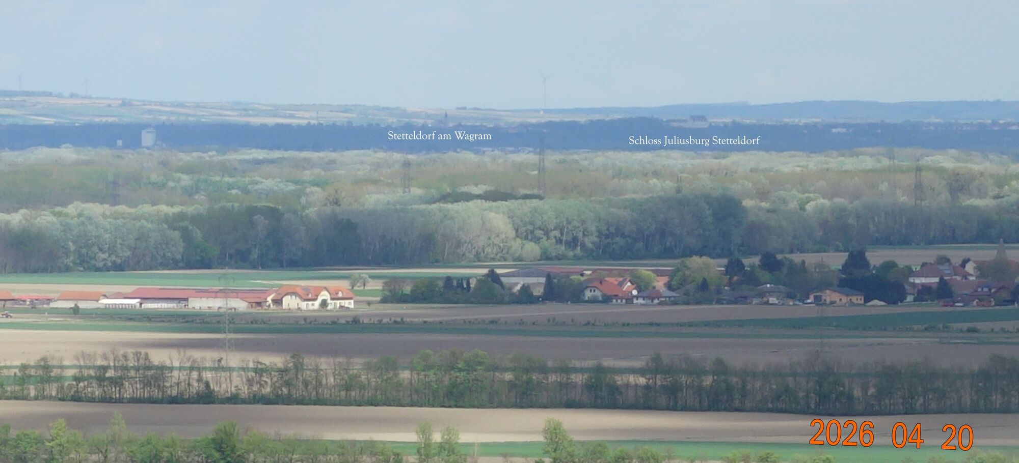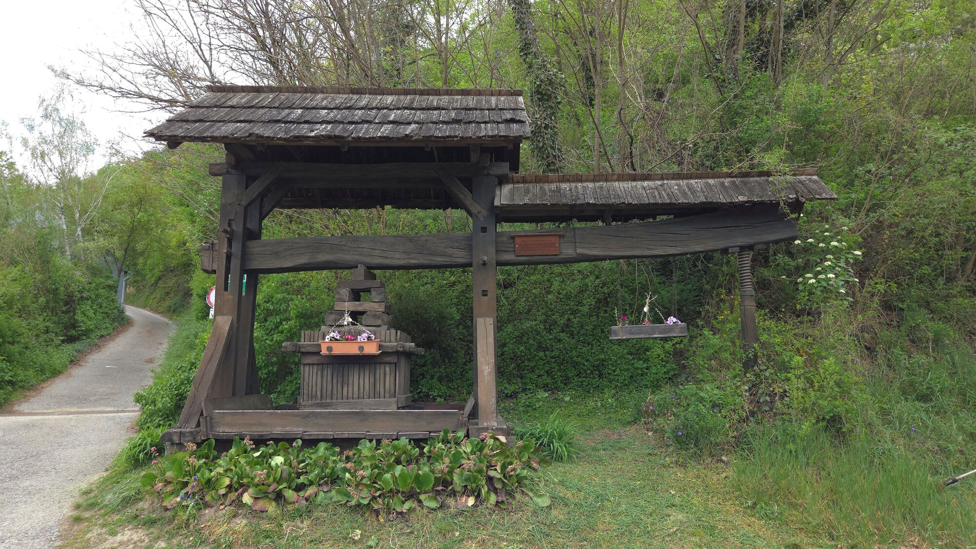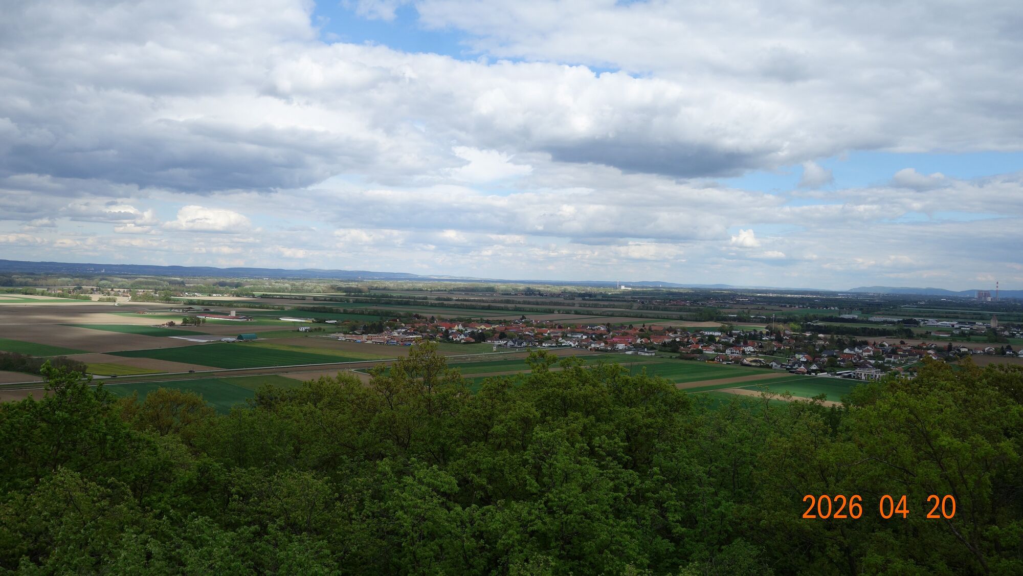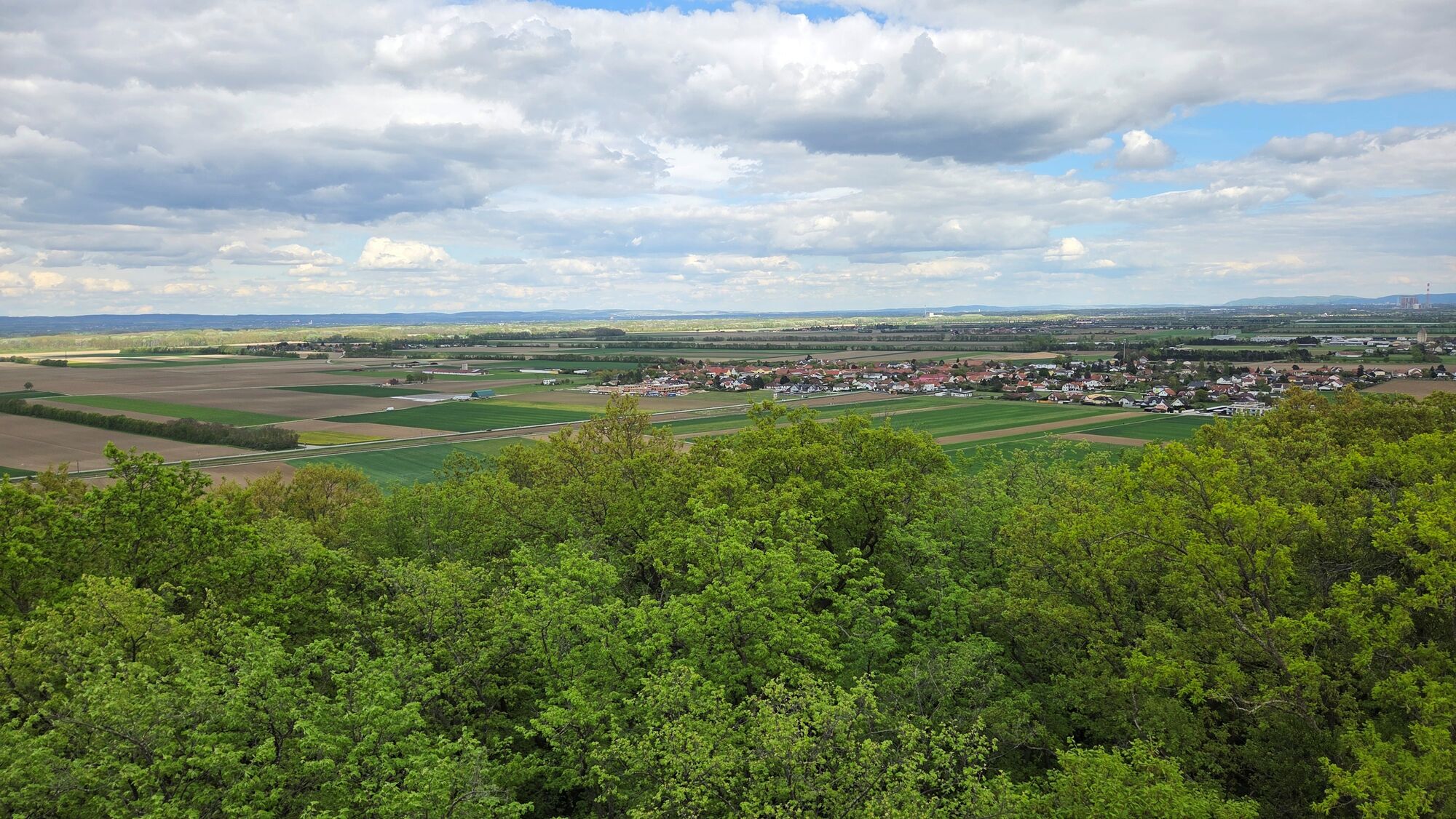 Beginn des Spazierganges ist in Ahrenberg östl. der gleichnamigen bekannten Kellergasse. Ausgehend vom Parkplatz bei der Kapelle, erst auf der Ahrenberger Ortsstraße, dann rechts in die Kellergasse an der Weinpresse vorbei. In die Kellergasse und gleich nach der Kurve vor dem gelben Haus rechts über die kleine Wiese am Waldsteig und hoch. Im Wald am Steig auf den Rücken des Eichberges und runter in den Sattel, jetzt offen und hoch zur Aussichtswarte am 265m hohen Fuchsberg mit der Aussichtswarte Korkenzieher (Plattformhöhe 12m).