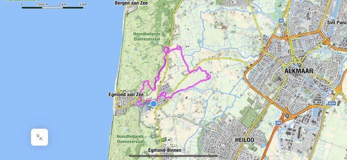 Groene Wissel. Graslanden, bollenvelden, duingebied. Aardig wat verhard. Halverwege horeca.
