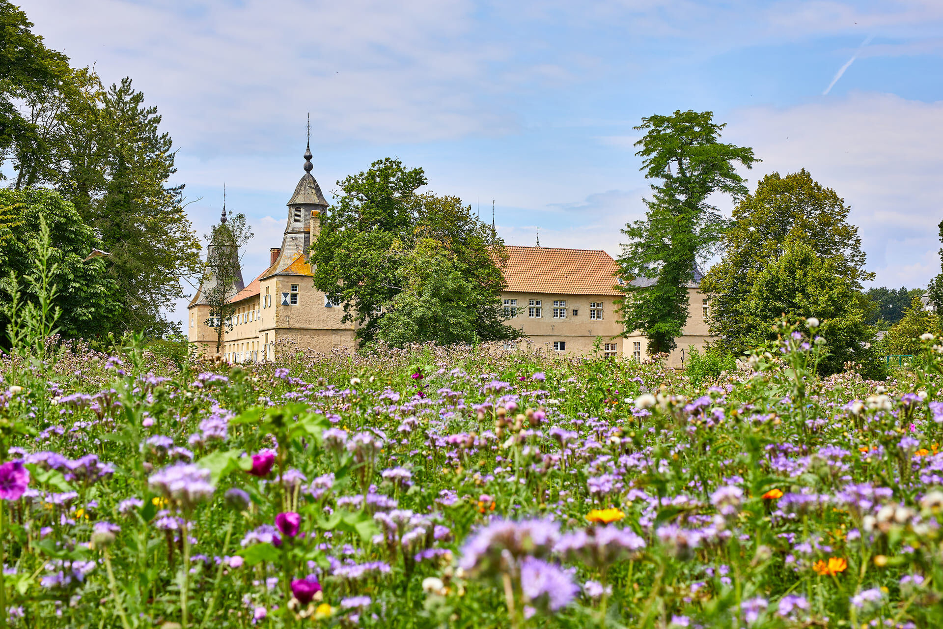 Doch bevor die 100-Schlösser-Route wieder nach Münster führt erwarten die Radfahrer nun noch einige spannende Orte, die die Geschichte der großen Dichterin Annette von Droste-Hülshoff erzählen. Ein ganz besonderer Ort ist die Burg Hülshoff, ihr Geburtshaus und zweifelsfrei eins der Highlights auf der 100-Schlösser-Route. Die Burg beheimatet das Droste-Museum und Teil des ansässigen "Center for Literature".Hiermit spielt die Burg Hülshoff eine ganz besondere Rolle im kulturellen Erbe der Region. Und auch die weitläufige Parkanlage mit den herrlichen Blicken auf das wunderschöne Bauwerk begeistert jeden Besucher. Die letzten Schätze auf der 100-Schlösser-Route sind Haus Vögeding und Haus Rüschhaus, die Route führt anschließend zurück zum Ausgangspunkt der Radtour.
