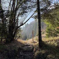 Grödel aktuell beim Abstieg vom Hochsalm, im oberen Teil von Vorteil / rutschig, Schnee- und vereiste Stellen am Weg im oberen Bereich / ansonsten komplett schneefrei.