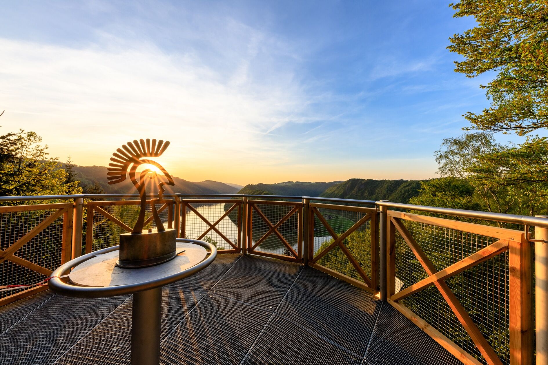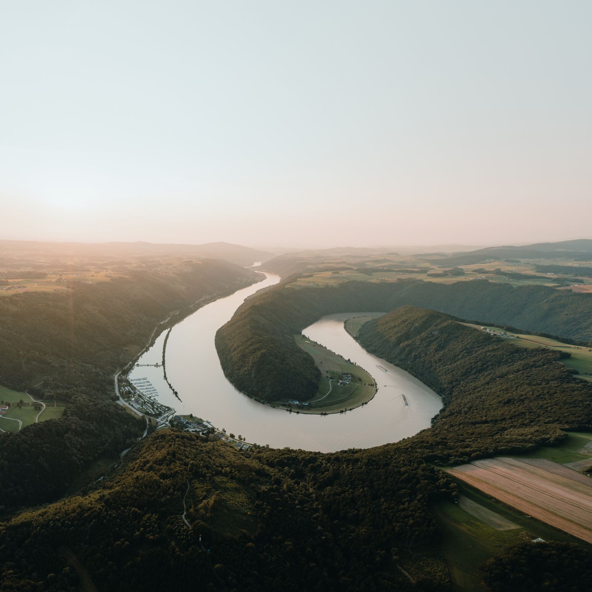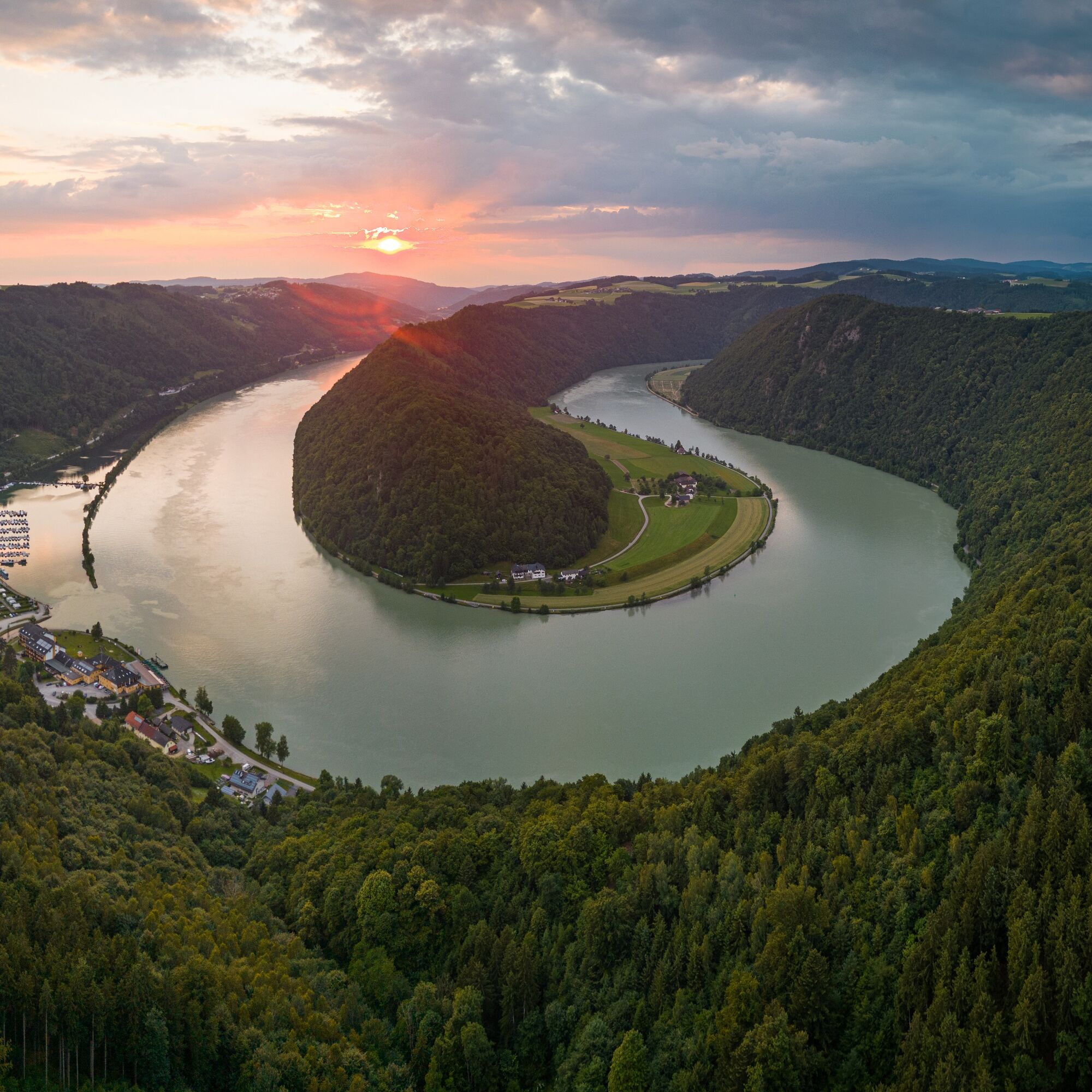 This Donausteig stage starts in Engelhartszell. The historic Danube market is nestled in the forest-rich breakthrough valley of the upper Danube close to the Bavarian border. The beautiful town center tells of a significant history as an imperial toll station and blends with the settings of the Engelhartszell Danube world into an experience world "Danube" – simply amazing! From the village center, we follow the mighty Danube River along the towpath about 4 km downstream. At the start, a short detour to the Trappist Abbey Engelszell and its wonderful Rococo church – a true jewel – is recommended! Later, the long Danube bank offers plenty of time for reflection. Suddenly, the conscious silence of the Trappist monks gains new quality and sharpens our senses for the special things along the way. In Oberranna, we make a short curve up into the mixed forests of the steep Danube slopes. The beautiful view back into the Danube valley rewards our effort. At the mouth of the Kleine Kösslbach into the Danube, we return to the large river. Now the ascent begins through the secluded Kleine Kösslbach valley – one of the top 10 natural highlights of the Donausteig! After a stretch of forest road, a magnificent hiking trail leads uphill through primeval gorge forests. Moss-covered block piles and mystical rock towers inspire our imagination. The highlight of this natural jewel is the rock balcony "Felsen-Blick" high above the valley – a secluded power spot! Shortly after, the rural Sauwald plateau begins. A atmospheric mosaic of extensive forests, flower-rich meadows, fertile fields, and traditional homesteads shapes this rolling cultural landscape. Over small country roads, we climb up to the Donausteig rest area "4/4-Blick". Congratulations – here we stand on the first summit of this stage! The unique 360° panoramic view allows seemingly endless vistas in all four quarters of Upper Austria. Then we continue on scenic country roads, through gentle ups and downs of the wonderful cultural landscape. In Aichberg, the Donausteig leads down into the dense forests of the steep Danube slopes and follows there, high above the Danube, the mighty river. The diversity of the forests here in the upper Danube valley becomes evident. In Waldkirchen, we return to the plateau. Here, a short detour to the village's picturesque parish church is recommended. The Donausteig now makes a deep loop down into the forest-rich Danube slopes, offering beautiful views of the nearby Danube castles from Vornwald. Once back on the plateau, we enjoy the extensive cultural landscape and hike along rural side roads to Paschinger Hill with its Donausteig rest area. Congratulations – here we stand on the second summit of this stage! The magnificent panoramic view over three sides reveals an incredible 20 church towers. Now the descent begins. Small village roads lead us to Straß, from where we descend via field and forest paths through the steep Danube slopes to the grand natural wonder of the Schlögen Danube loop. Donausteig – simply an experience!