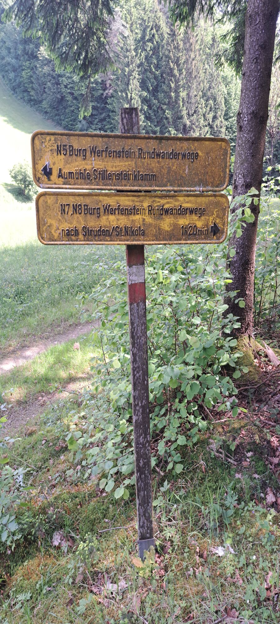 Start vom Gasthaus Aumühle geht man den Rundweg über Waldwege, Schotterwege und im späteren Abschnitt durch die Stillensteinklamm Sie ist kostenlos und eine kleine Klamm im Vergleich zur Dr. Vogelgesang-Klamm...