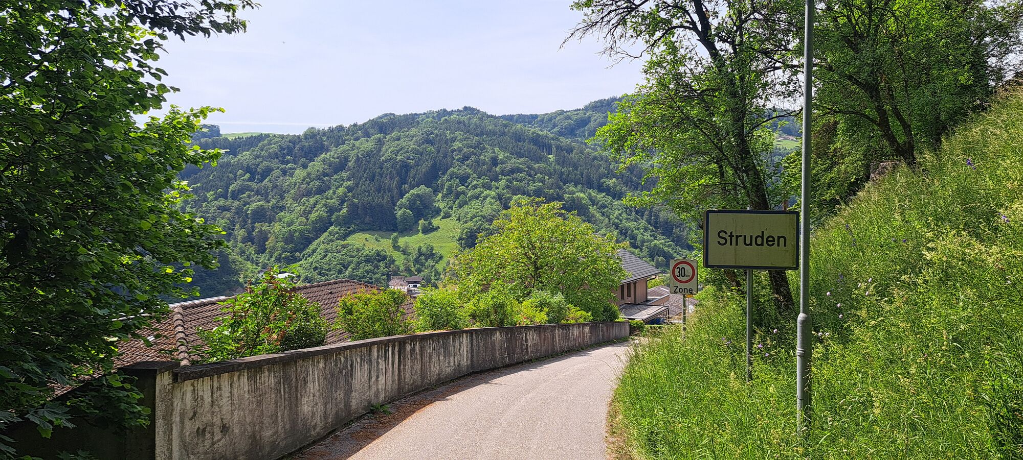 Fast die ganze Strecke ist schattig, nur das kurze Stück in Struden liegt ganz in der Sonne