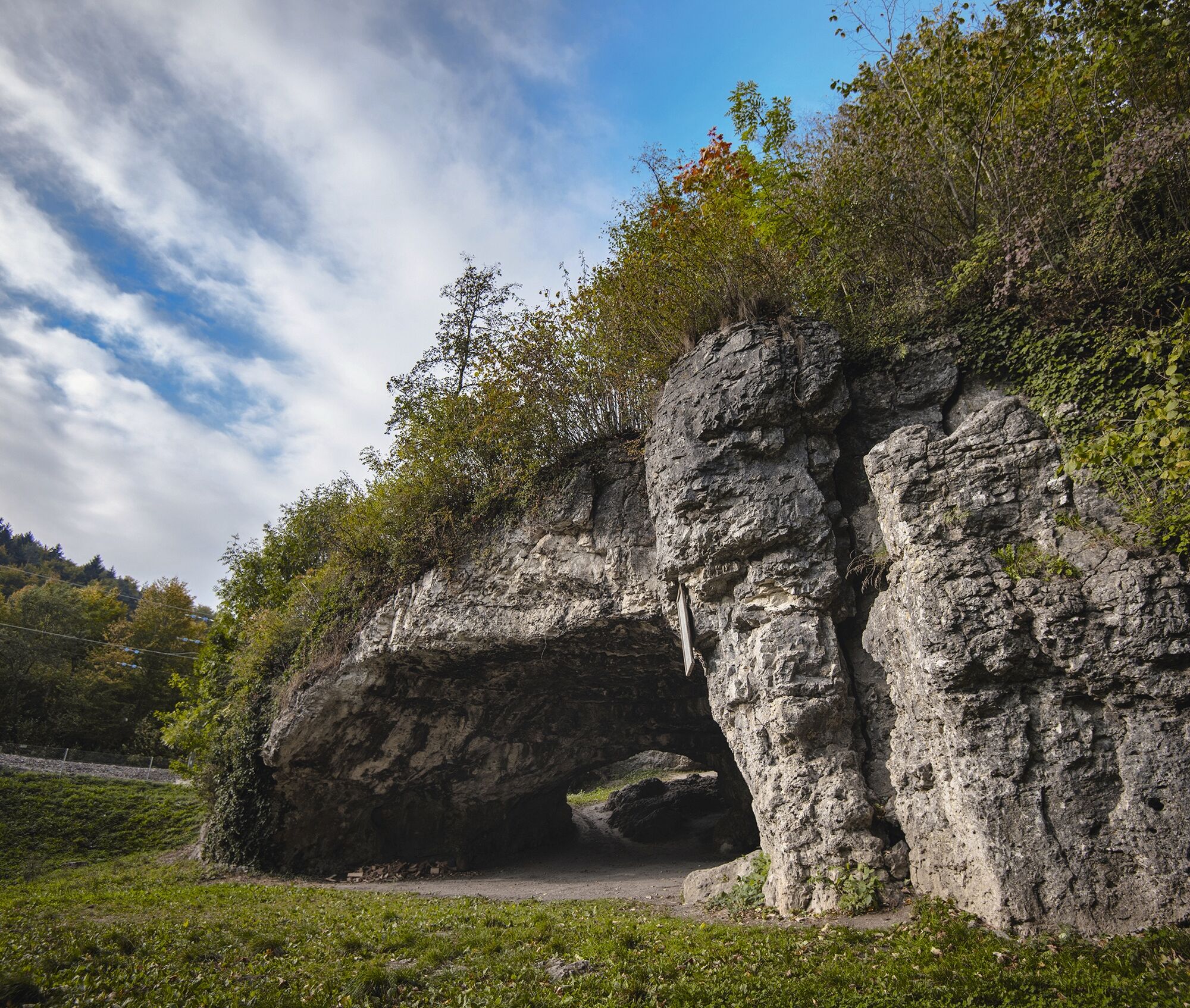 From Schaffhausen railroad station, cycle along Hochstrasse to Herblingen and follow the cycle path to Thayngen. You reach the Kesslerloch. It is one of the most important sites of the late Ice Age in Europe. Excavations were carried out until 1980, which even brought mammoth and reindeer bones to light. The tour continues along the Biber. It is the largest tributary of the Rhine between Stein am Rhein and Schaffhausen. The journey continues through the small villages of Bibern and Hofen. If you need to cool off, the Reiatbadi is waiting for you in Hofen - small but nice. Once you arrive in Altdorf, it's worth taking a sip of a good wine from Switzerland's northernmost vineyard. The route now continues towards Merishausen, where the longer ascent past the Buechberghaus towards the Schleitheimer Randentourm awaits you. Via the Zelgli you reach Hemmental, from where you return to Schaffhausen railroad station through the Hauental valley.