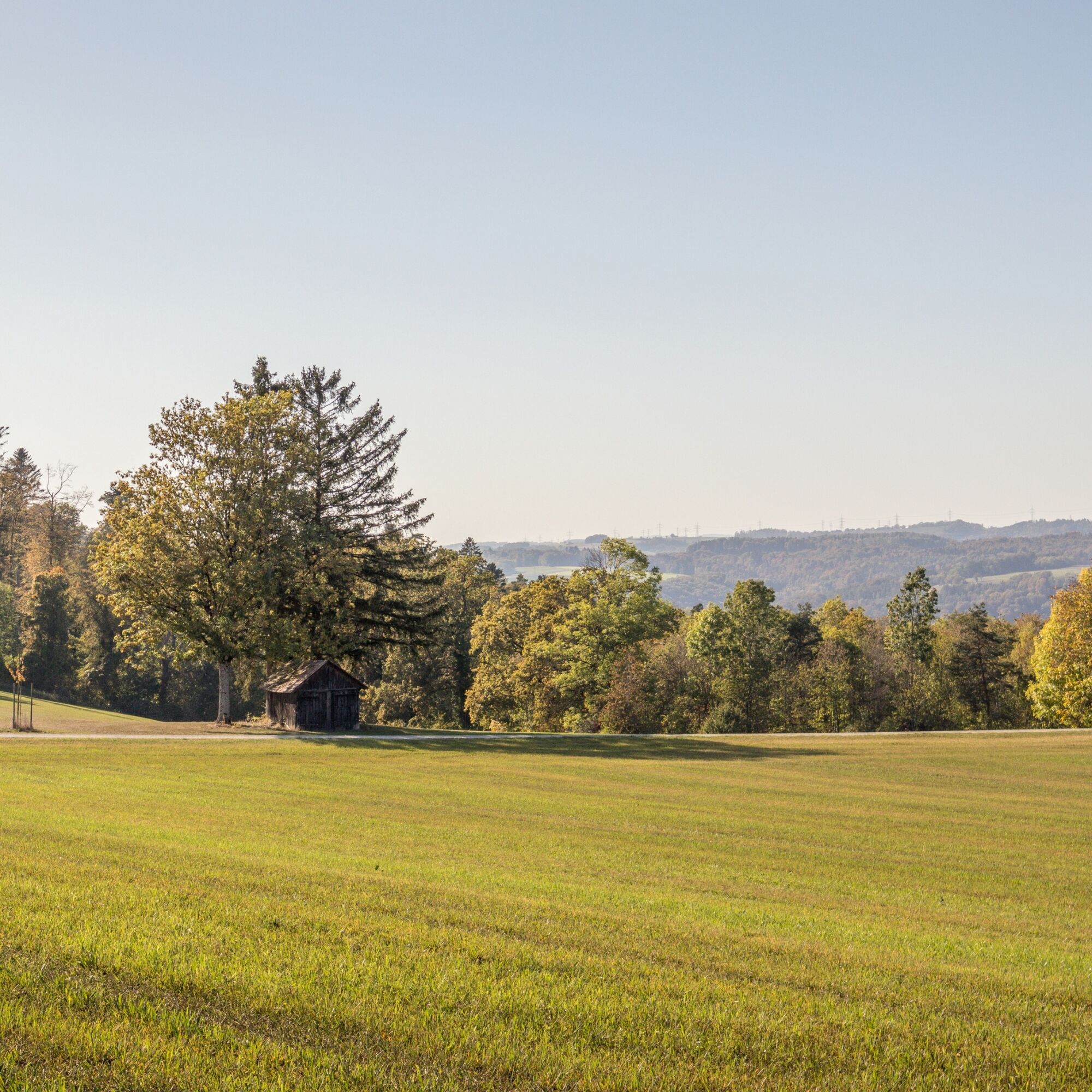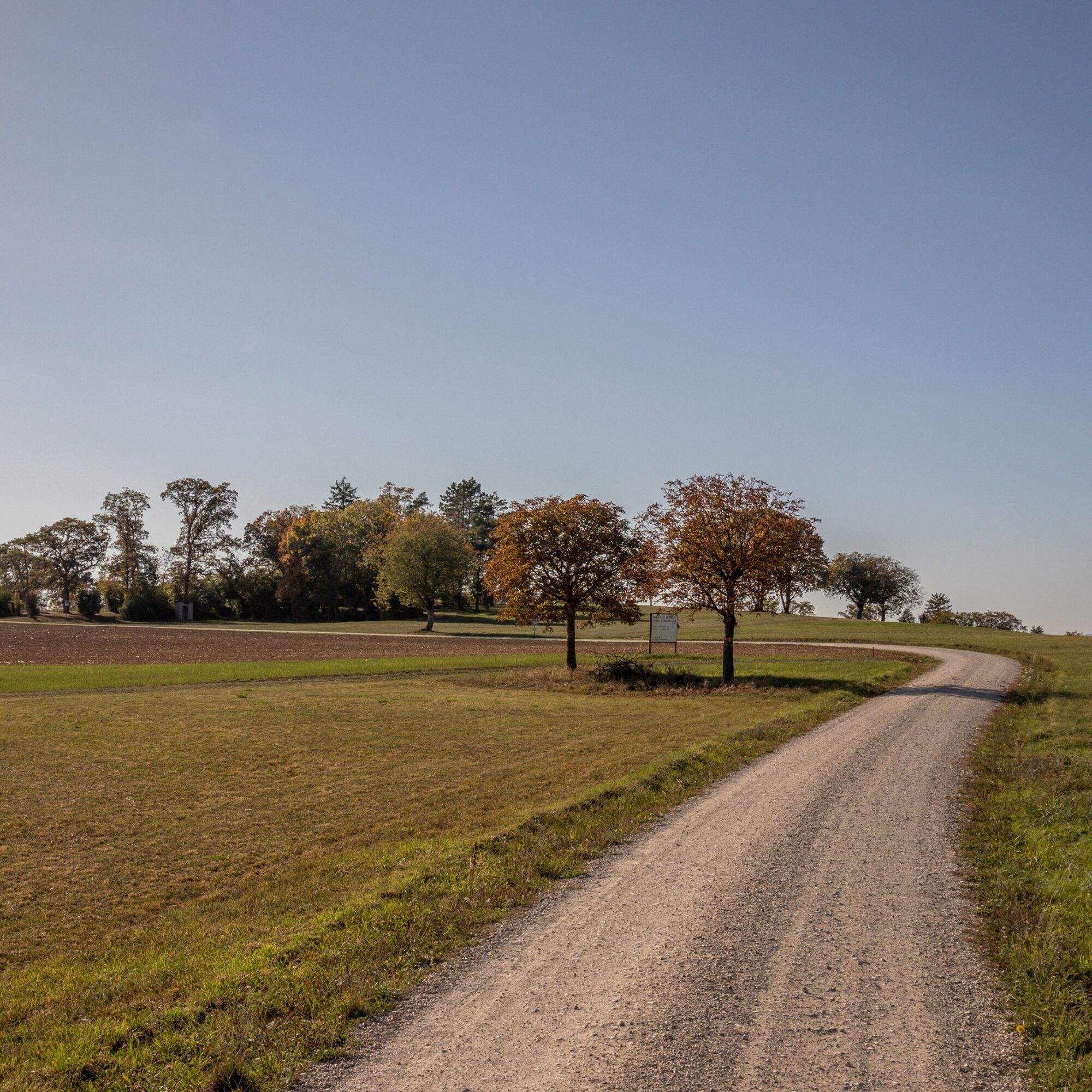 The Pinot Noir Panorama Trail 899 starts at the bus stop at Siblingerhöhe. You follow the mountain road towards Gächlingen and immediately take the first field path on the right. Follow the field path until you can turn left. Here, continue along the field path towards Oberhallauer Berg to the Hinterer Berghof. A steep path between fields and forest towards the village leads you further over the main road into the vineyards. At the first intersection, take the path to your right and continue along the vineyards towards Hallau. Enjoy the beautiful distant view. Follow the path and signage until it goes slightly downhill. At the second fork, continue right. Soon you will pass the Räbhüüüsli Münderet. A short break is worthwhile. The path then leads past the well-known mountain church of St. Moritz. Now it goes uphill again, past the grill area Tisch and Bänk, below the Berghof Hallau continuing to the forest. Uphill again, past the grill spot Oberi Egg towards Wilchinger Berg / Trasadingen. Past Rummele towards Rummelehof. Following the ridge, it goes over Wilchinger Berg to the Erlebnis Bauernhof. Now it goes downhill towards Trasadingen. Whether at the fork you go left or right is up to you; both paths lead to your destination.
