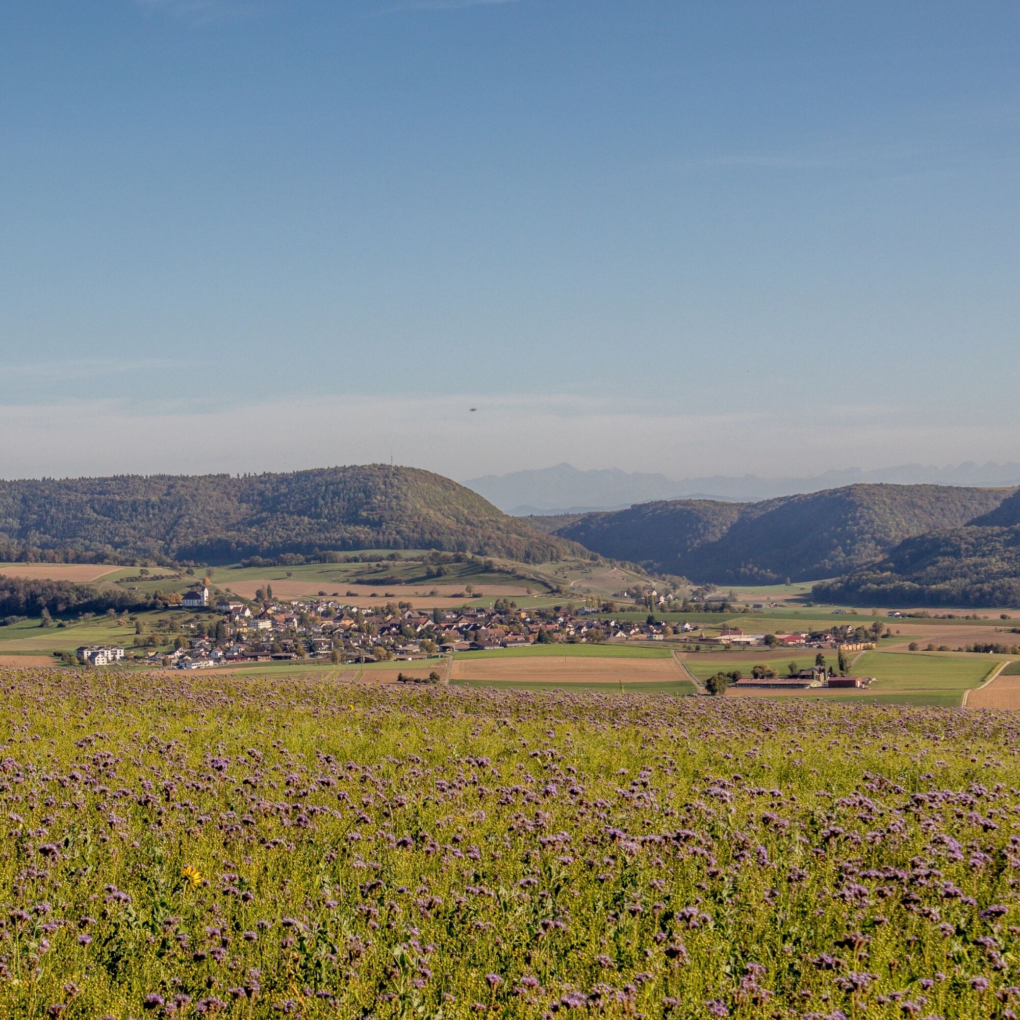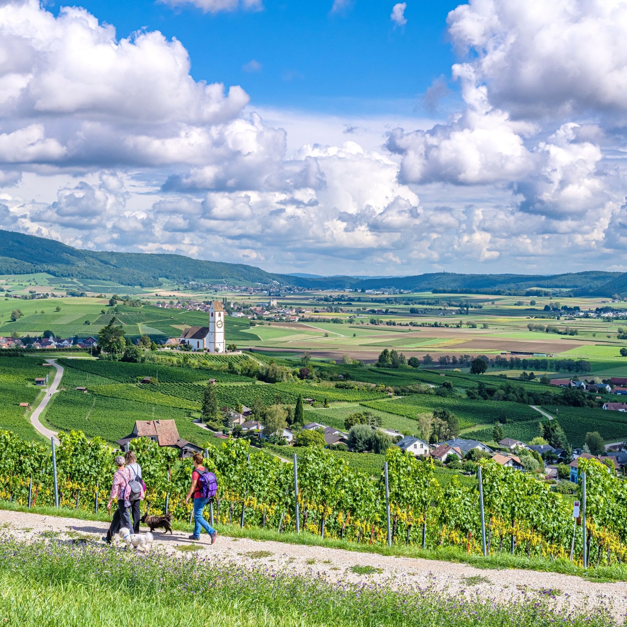 The high-altitude hike through the heart of the Schaffhausen Pinot Noir region runs from the Siblingerhöhe to Trasadingen. Along the entire route, you enjoy a wide view over the vineyard landscape up to the Swiss Alps.