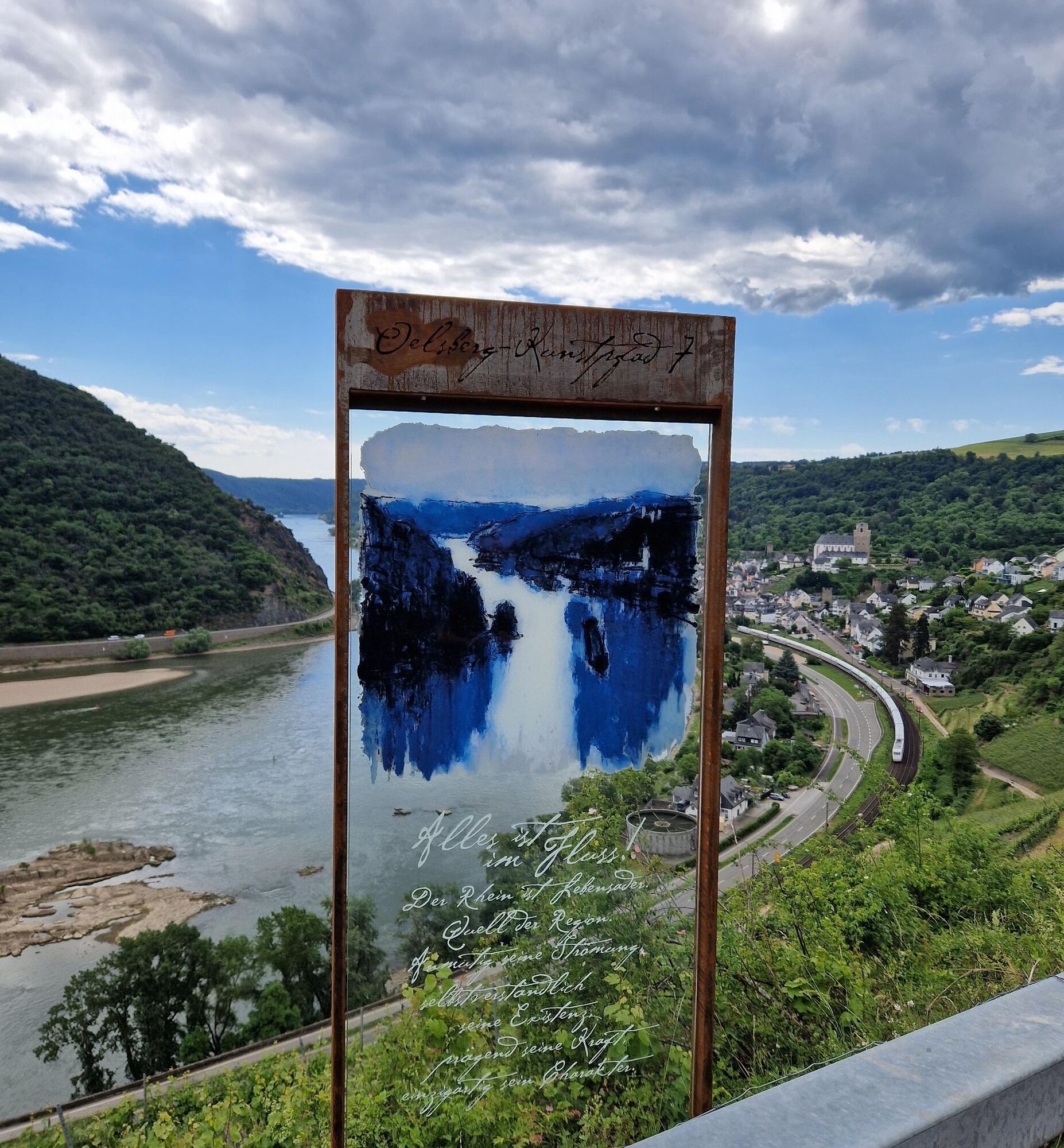 And since you are repeatedly on the World Heritage Trail, the Rhine Castle Trail and/or the Middle Rhine Dream Loop on this route, there are also great views in abundance and interesting photo motifs, such as the 3 m high BUGA logo made of corten steel.