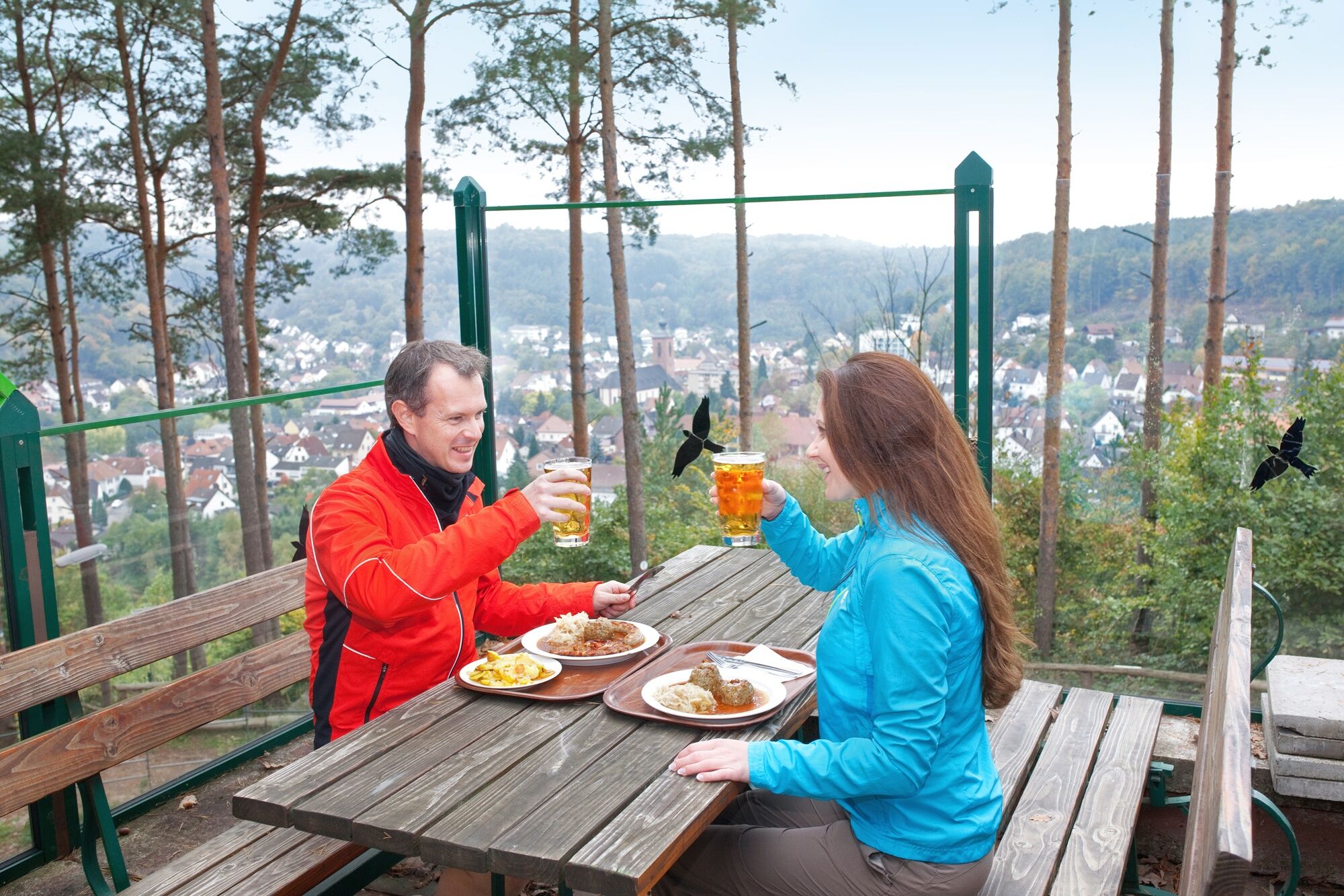 Back at the Hilschberghaus, you can conclude an all-around successful hike with Palatinate delicacies and wonderful views on the sunny terrace of the PWV-Hilschberghaus, while the children enjoy themselves in its playground.
