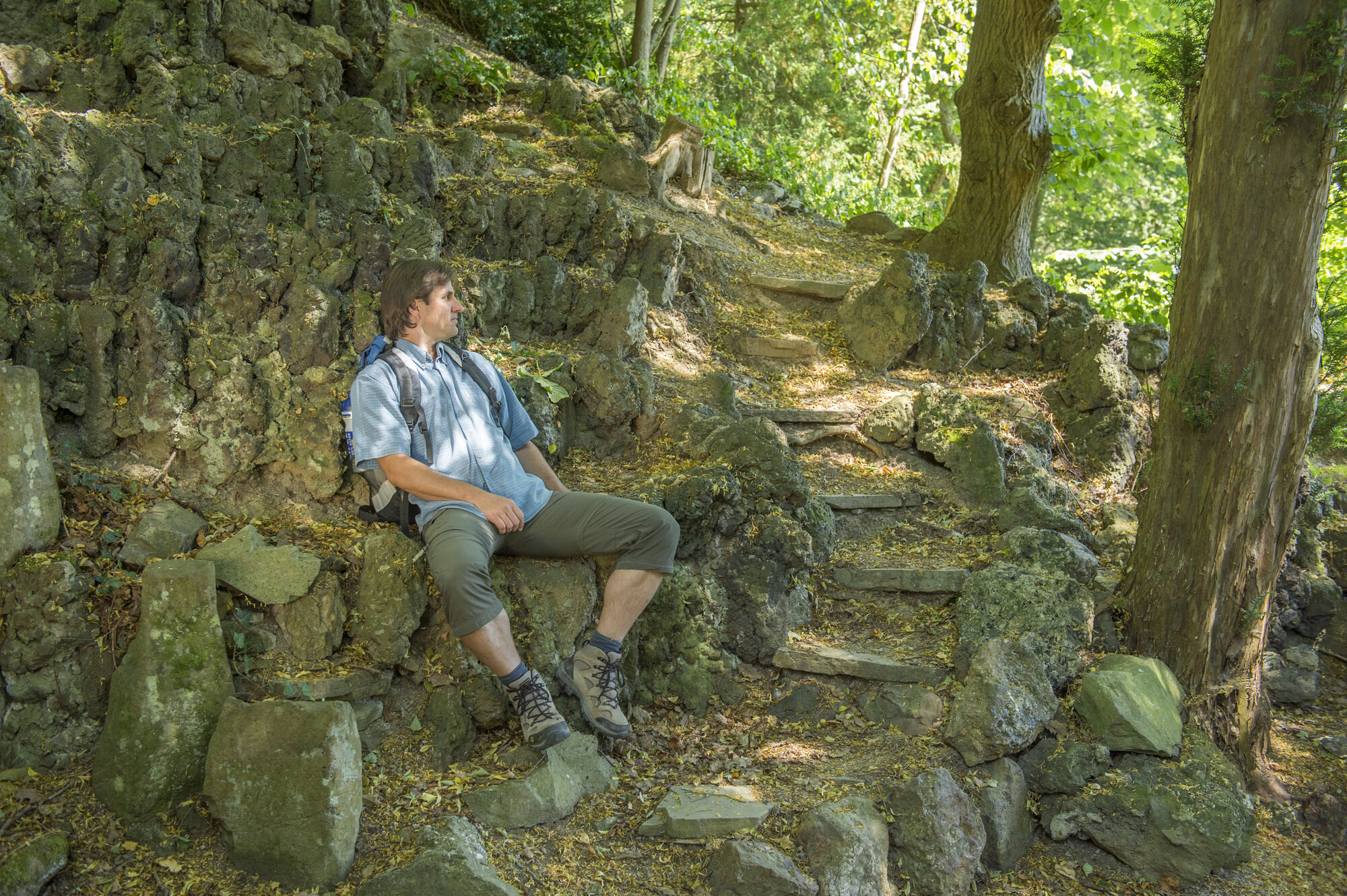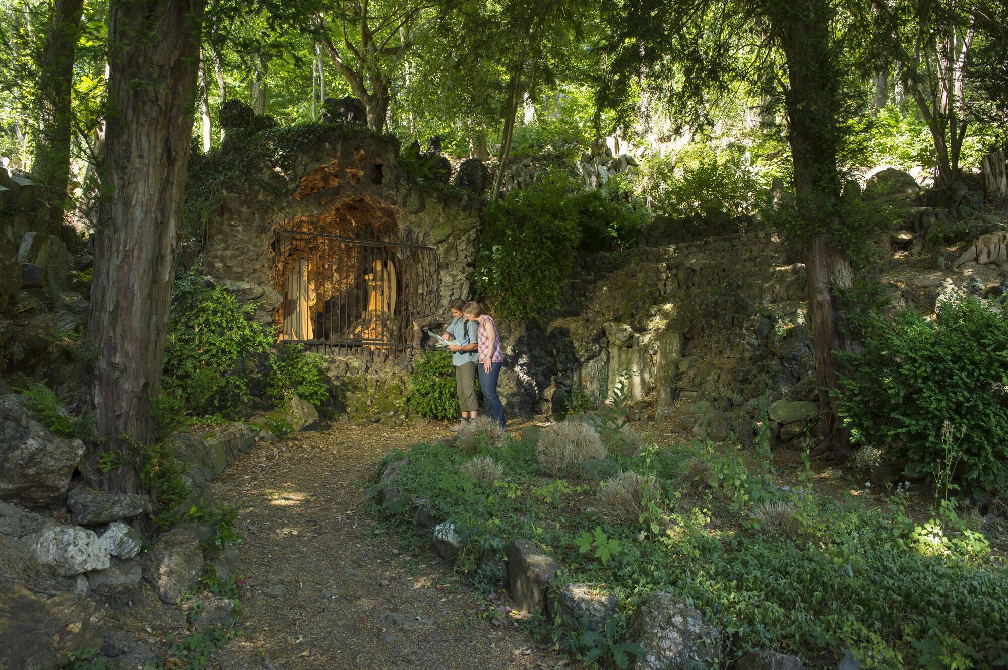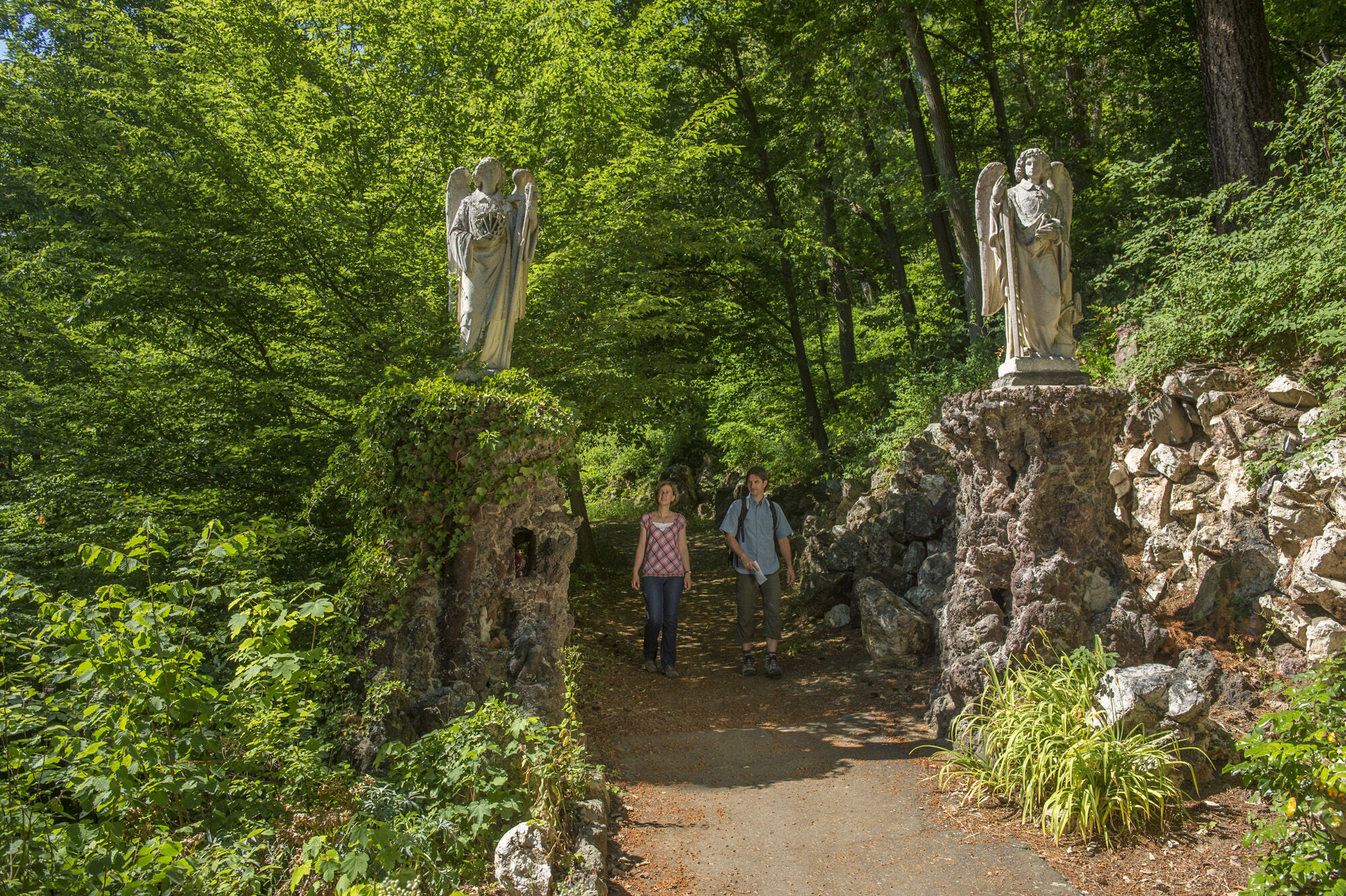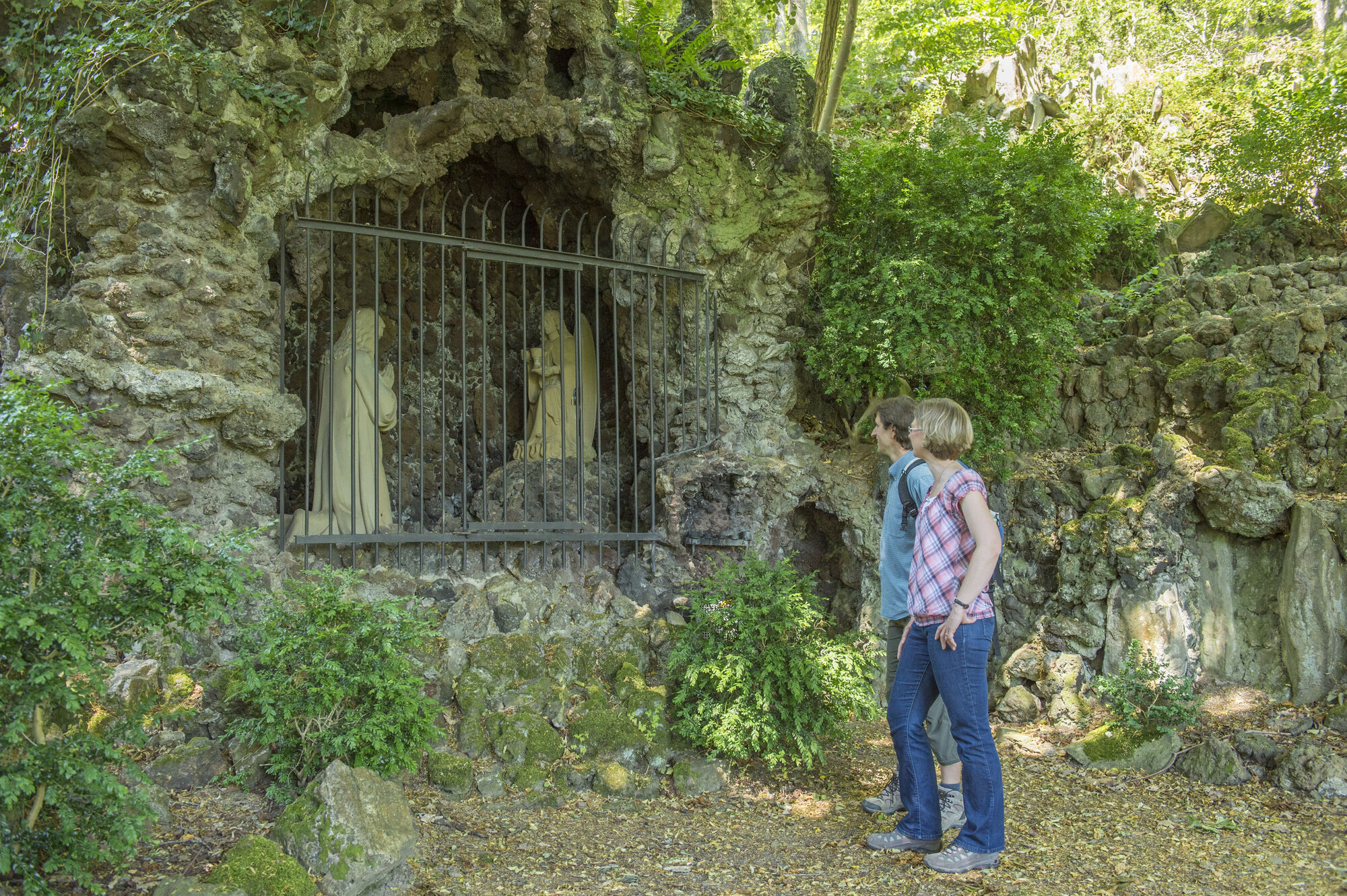 Der historische Kreuzweg in Adenau, zwischen 1861 und 1863 von Bürger:innen der katholischen Pfarrei im neugotischen Stil errichtet, bietet eine Möglichkeit zur Besinnung. Er eröffnet zudem Potenzial zur Entdeckung der vielfältigen Flora und Fauna der Umgebung. Zwei Engel, ausgestattet mit den Leidenswerkzeugen Christi, markieren den Beginn dieser Stätte. Die Darstellung "Jesus im Garten Gethsemane" sowie eine "Grablegungsgrotte" mit sieben Figuren rahmen den Kreuzweg thematisch ein.