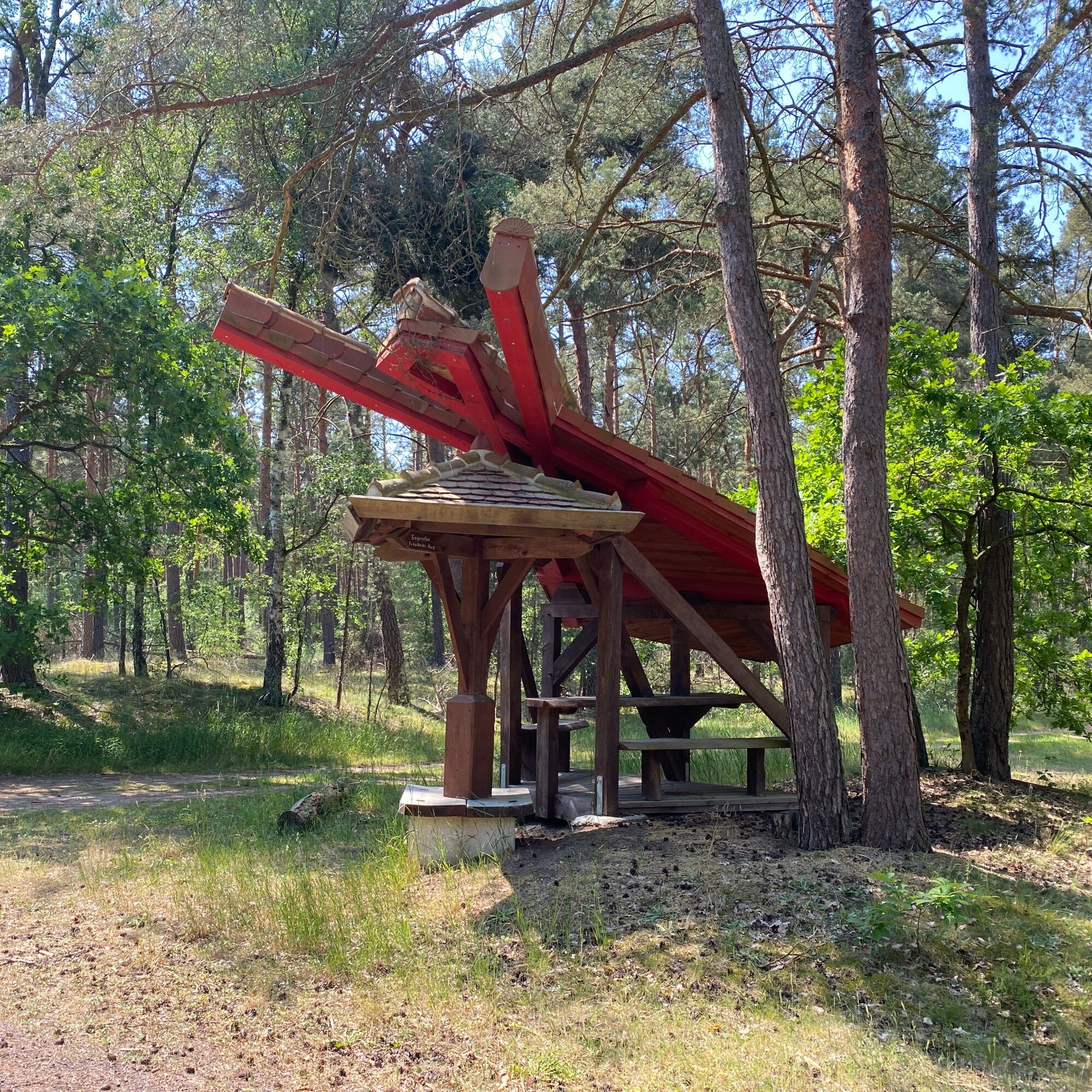 Shortly before the weekend cottages hidden in the forest, a path branches off uphill to a nicely located bench. Through the trees, glimpses of the lake can be caught. On the way to the Kamernschen Berge lies the Flying Frau Harke, an unusually designed rest area. The Frau Harkenberg, at 110 meters, is the highest elevation of the Kamernschen Berge, surrounded by varied pine forest. Through a deeply cut valley down to Hohenkamern and along the forest edge through a flat meadow valley back to the lake.