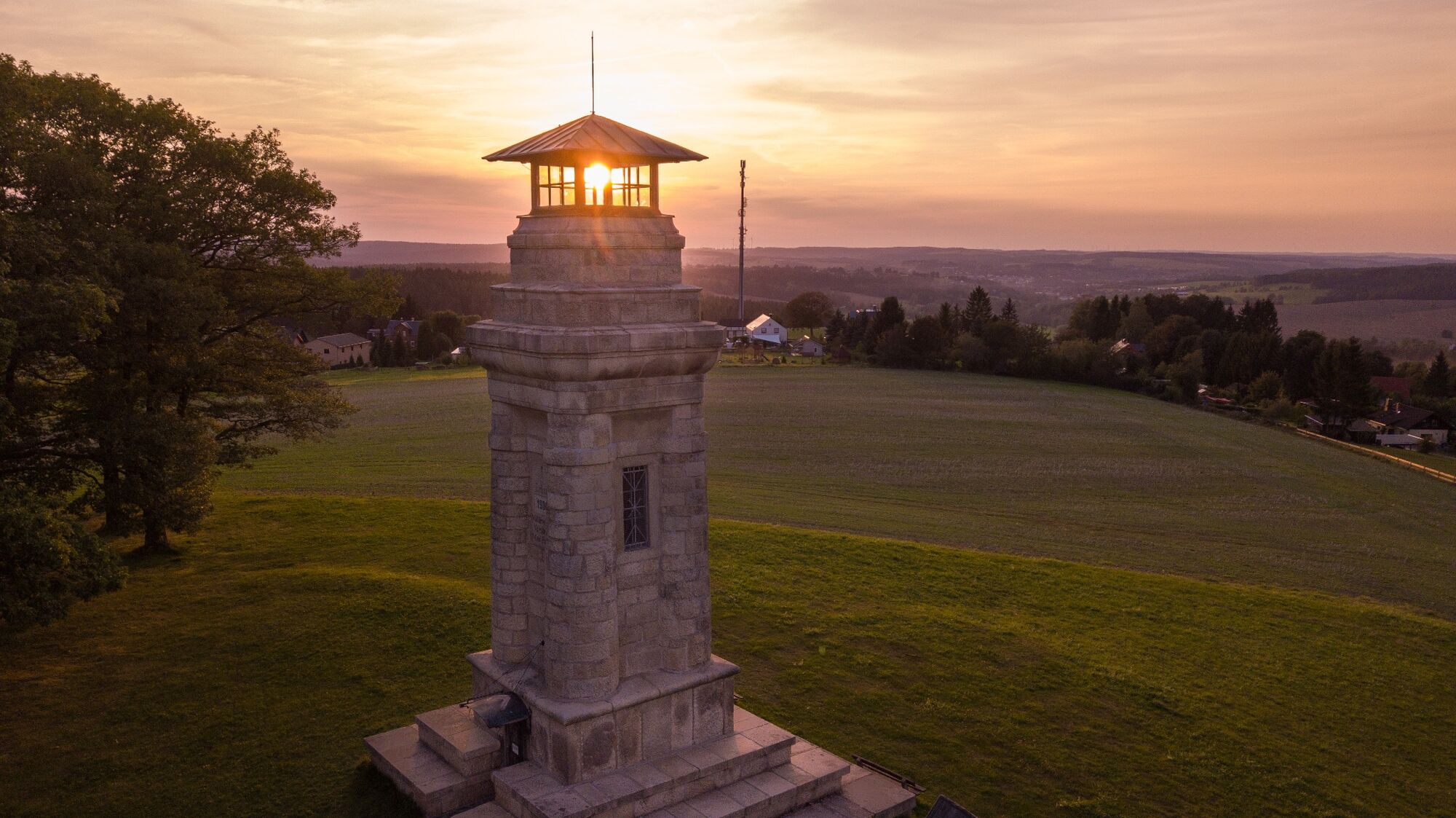Dort befindet sich in unmittelbarer Nähe die Bismarcksäule mit schönem Blick auf die Musikstadt.