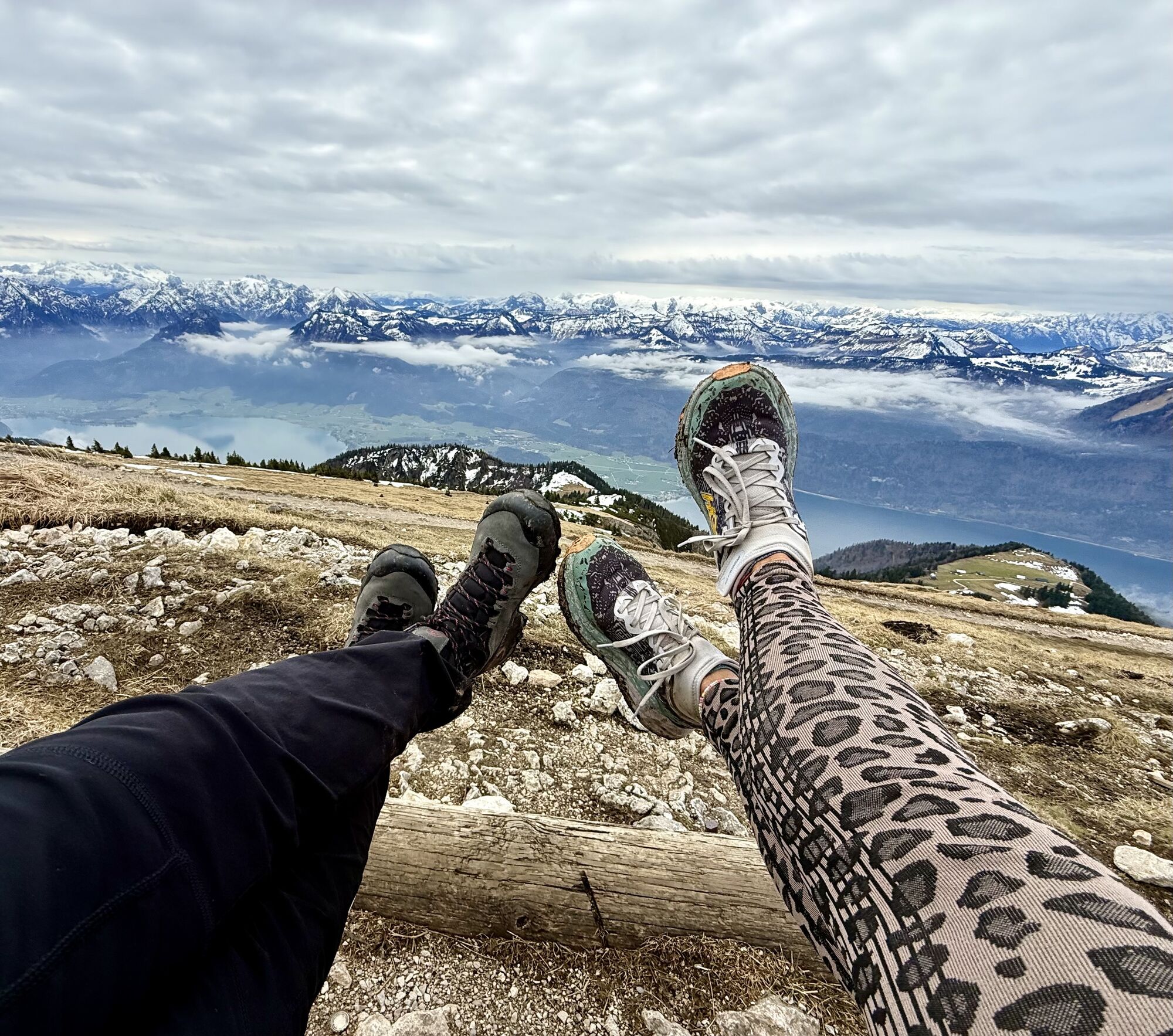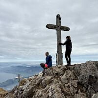 2 x waren beim Schafberg Gipfelkreuz, weil es am Vormittag noch bewölkt war und später dann fetzblau … Also nach der Spinnerin nochmal rüber für schöne Fotos mit blauem Himmel… 🤷🏼♀️🤗