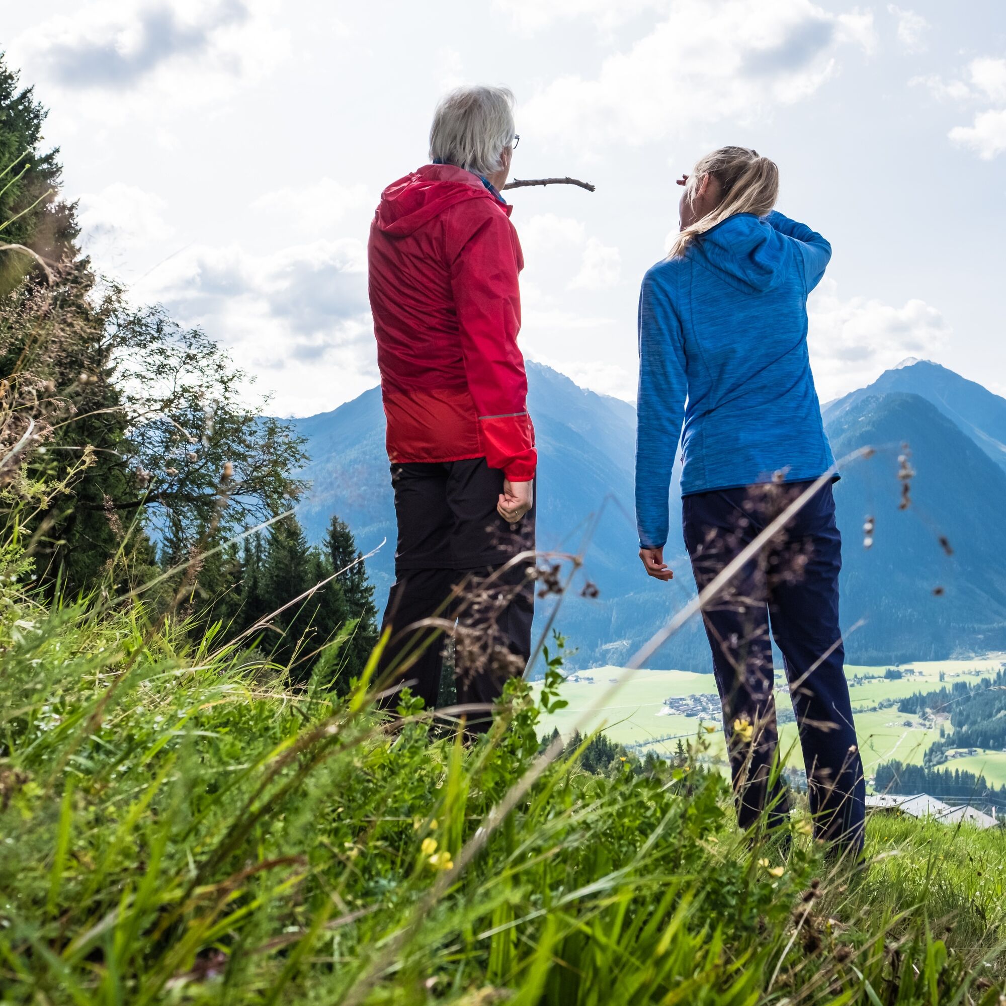 gute Schuhe, evtl. Stöcke, Sonnen- und Regenschutz, Jause, genug Wasser