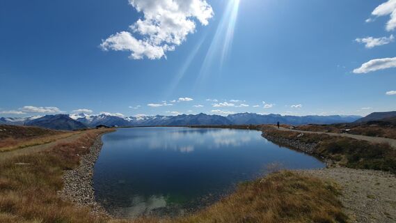 Von der Bergstation Wildkogelbahn führt der Weg Richtung Osten. Dieser relativ flach angelegte Weg ist auch gut mit einem Kinderwagen machbar. Auf der Südseite des Pfeifferköpfls wandert man vorbei bis zur Wildkogel-Alm. Danach kann man die beiden schön eingebetteten Speicherseen umrunden und wandert im Anschluss auf der Nordseite des Pfeifferköpfls wieder zurück zur Bergstation.