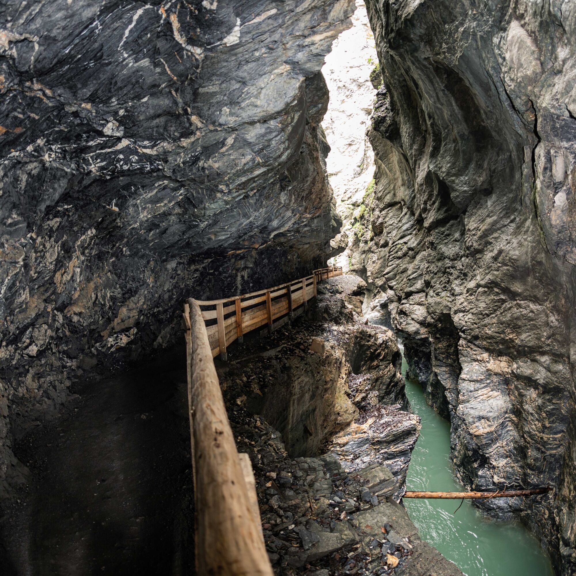 You start the hike at the parking lot of the Alpendorf gondola and use the underpass to the parking lot. At the right outer edge of the parking lot, take the forest trail towards Liechtensteinklamm. On...