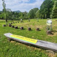 The start of the trail is at the information board in Športné patek Velenje, not far from Lake Škal. From the starting point, the path heads east along a short asphalt section, then heads right next to the lake. After less than a kilometer, it turns over a wooden bridge further along the lake. The path is picturesque and offers a view of the lake from different perspectives on one side, and on the other side of the meadows, Graško gora, and other surrounding hills. At the connection to the Veliko ot in the northwestern part, a view of Lake Velenj opens up. Along this (western) part of the path, there are information points for the Sadna poti, information about the water birds in the area, information about the village of Stare Škale, which is sinking due to lignite mining. The path leads past an energy point called the Poetry Grove of Velenje. Along the path, there are quite a few benches for resting with a view of the lake.The start of the trail is at the information board in Športné patek Velenje, not far from Lake Škal. From the starting point, the path heads east along a short asphalt section, then heads right next to the lake. After less than a kilometer, it turns over a wooden bridge further along the lake. The path is picturesque and offers a view of the lake from different perspectives on one side, and on the other side of the meadows, Graško gora, and other surrounding hills. At the connection to the Veliko ot in the northwestern part, a view of Lake Velenj opens up. Along this (western) part of the path, there are information points for the Sadna poti, information about the water birds in the area, information about the village of Stare Škale, which is sinking due to lignite mining. The path leads past an energy point called the Poetry Grove of Velenje. Along the path, there are quite a few benches for resting with a view of the lake.