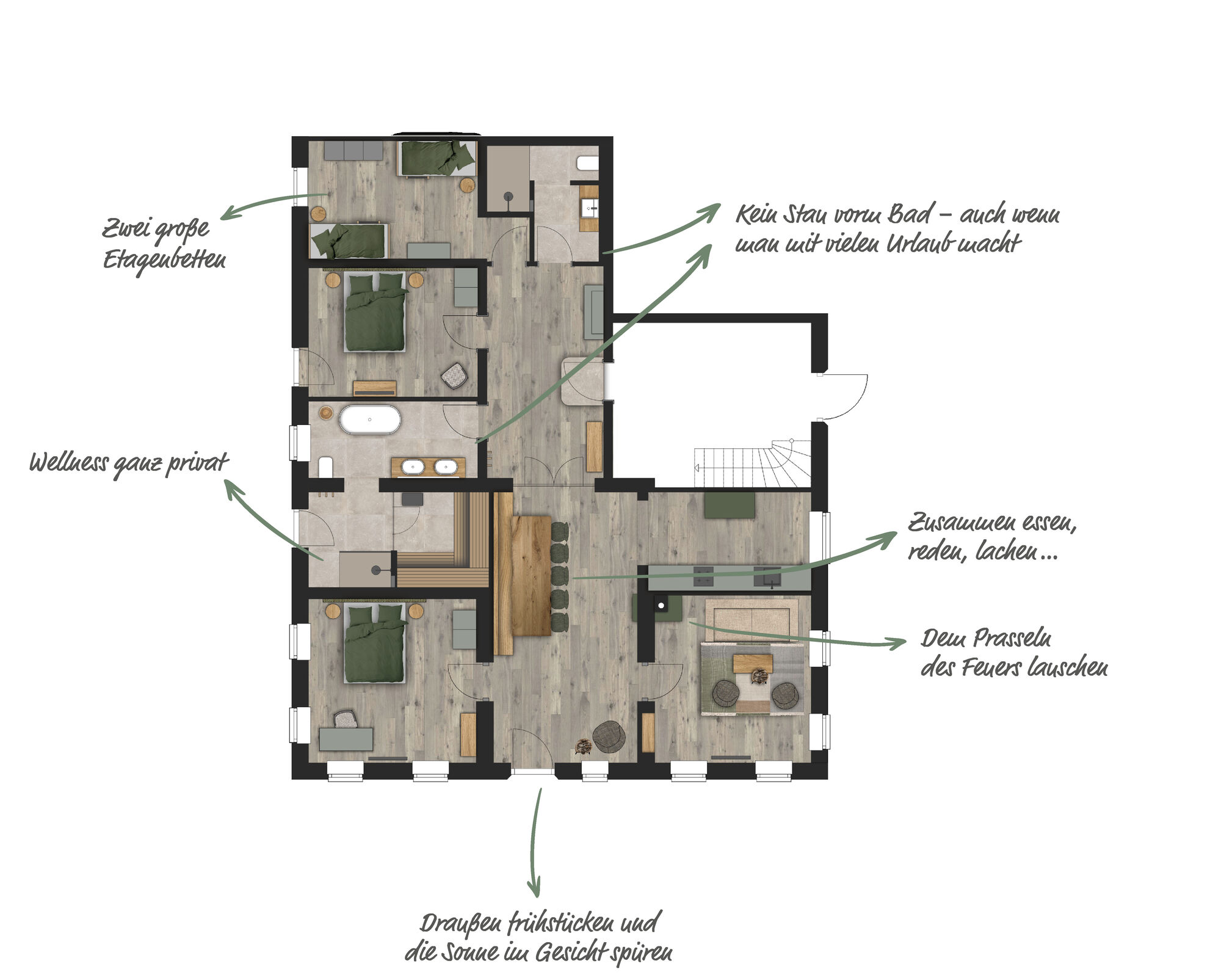 Zur Ruhe kommen, entspannen, erholen: Das ist der Dreiklang, in dem unsere gemütlich-modernen Apartments ertönen. Diese ruhigen Töne finden sich in der Gestaltung wieder, und in der Umgebung des Achentals, die den perfekten Raum schafft, um den durchgetakteten Alltag hinter sich zu lassen.