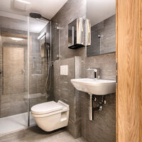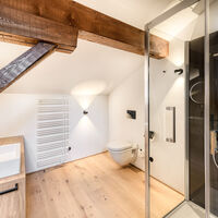 In the vaulted cellar is a small wellness oasis with infrared sauna and two additional bathrooms.