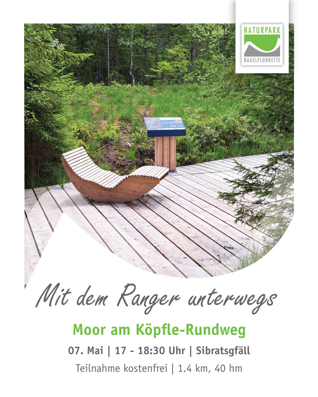 Bei einer informativen Runde mit einer Rangerin vom Naturpark Nagelfluhkette erfährst du, wie aus dem 2024 renaturierten „Moorbad“ der Köpfle-Rundweg entstand, was dabei alles gemacht wurde und welche Rolle Moore fürs Klima spielen.