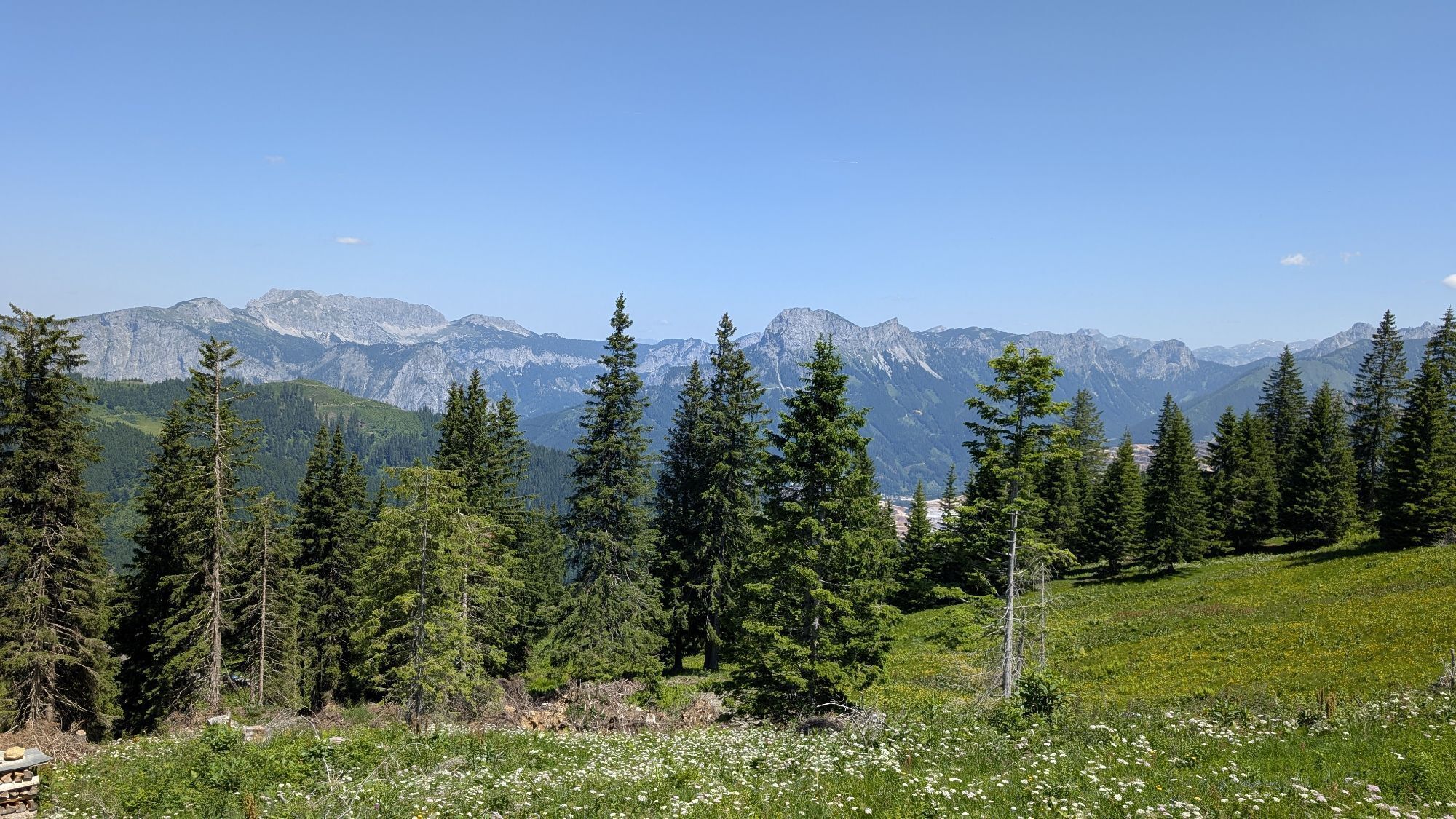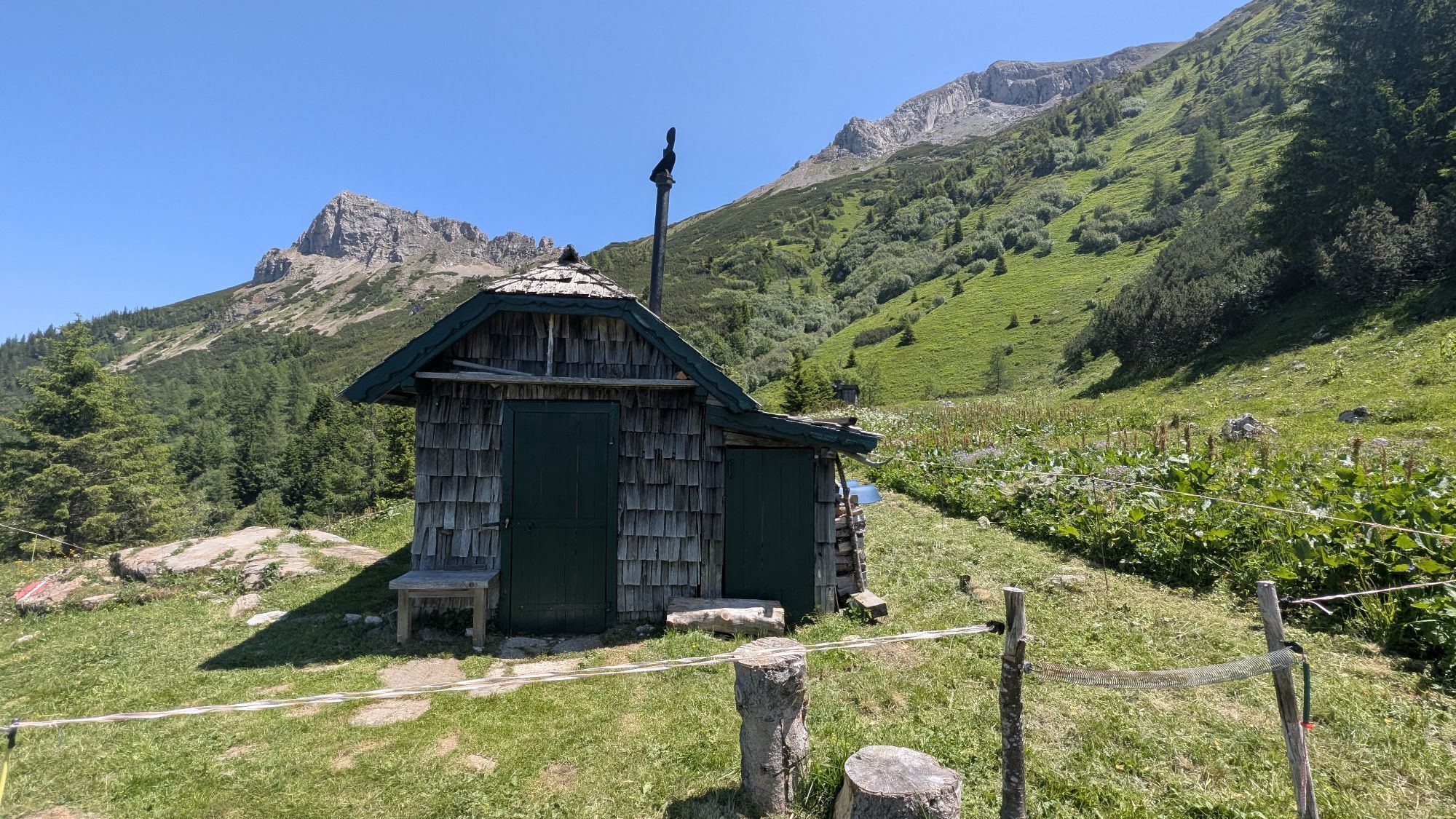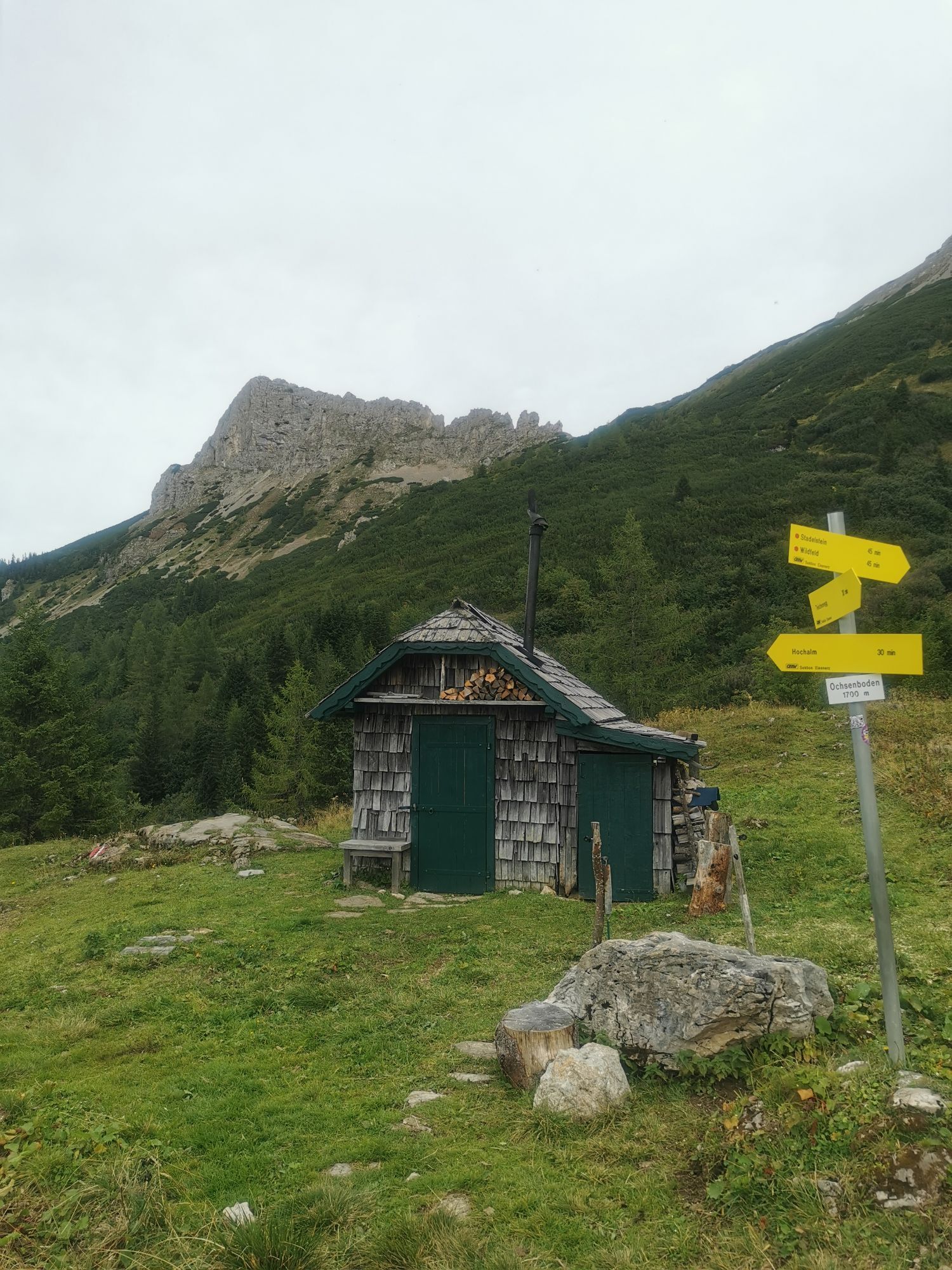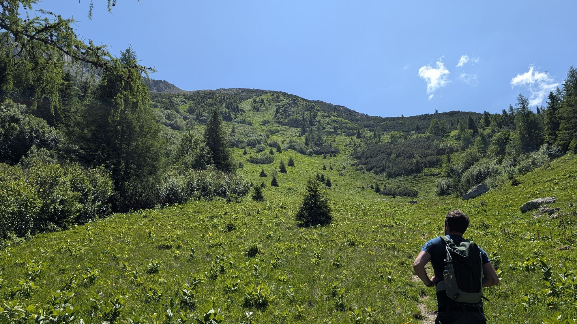 Nun biegen wir nach Nord-Osten über die Hochebene zum Stadelstein, die letzten Meter hier etwas steiler. Den Steilen Teil auch wieder zurück dann aber Abstieg entlang des markierten Weges bis zum Ochsenboden, von dort dann nach Norden auf fast immer gleicher Höhe bis zur Hochalmhütte.