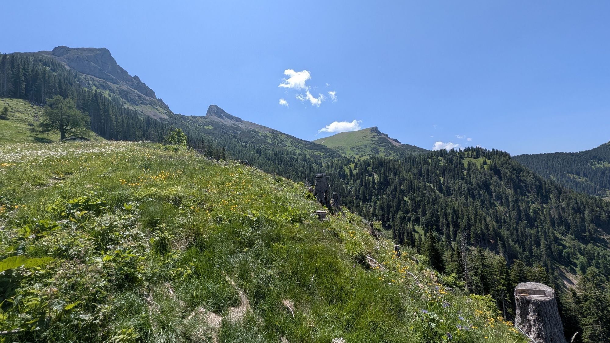 Am gleichen Weg zurück zum Teichenegg Sattel, dann aber immer am Grat entlang nach Süd-Osten bis aufs Wildfeld. Unterhalb des Gipfels treffen wir oft auf Murmeltiere.