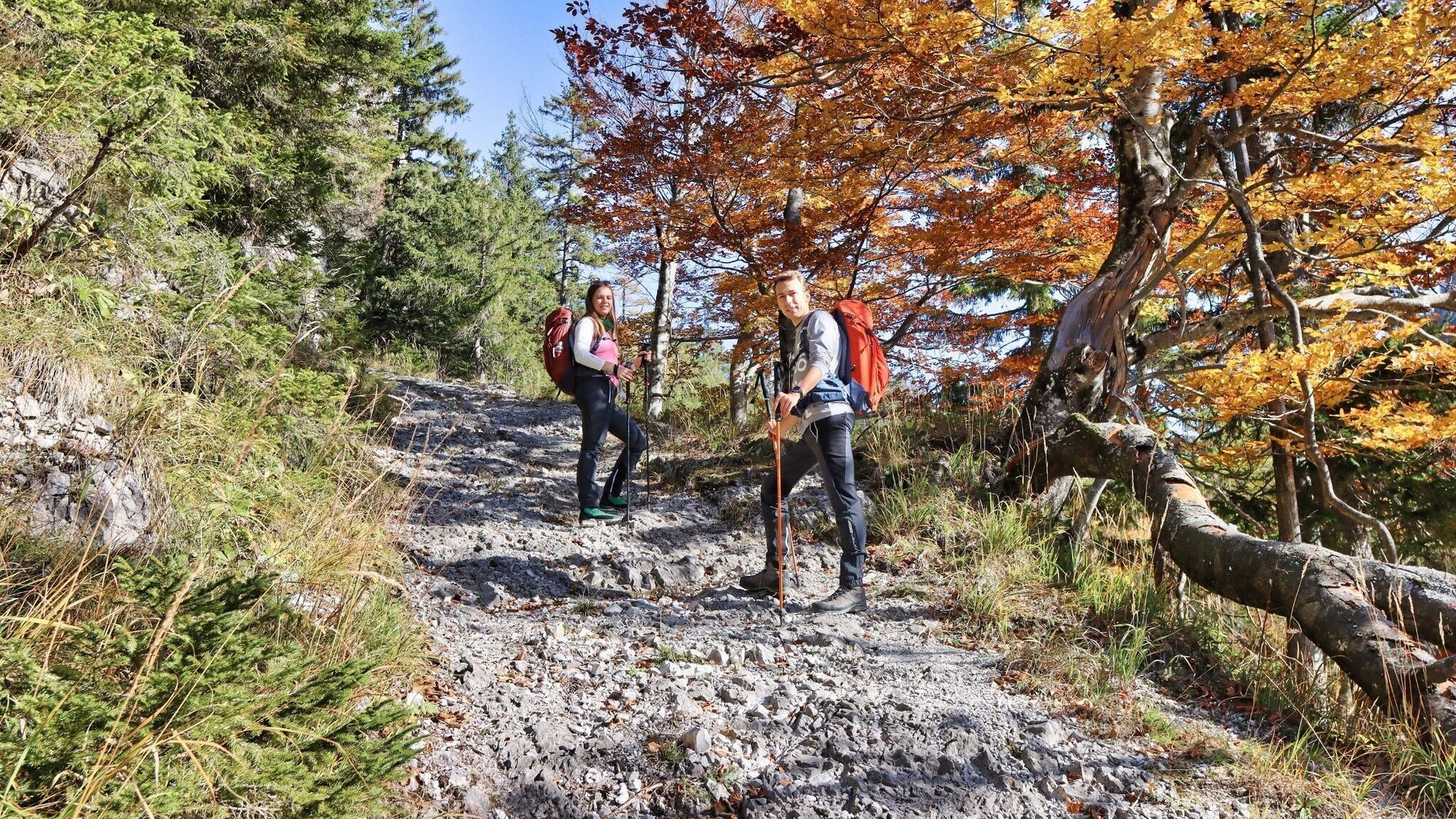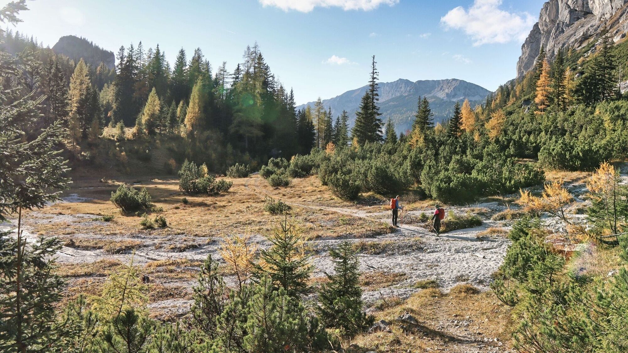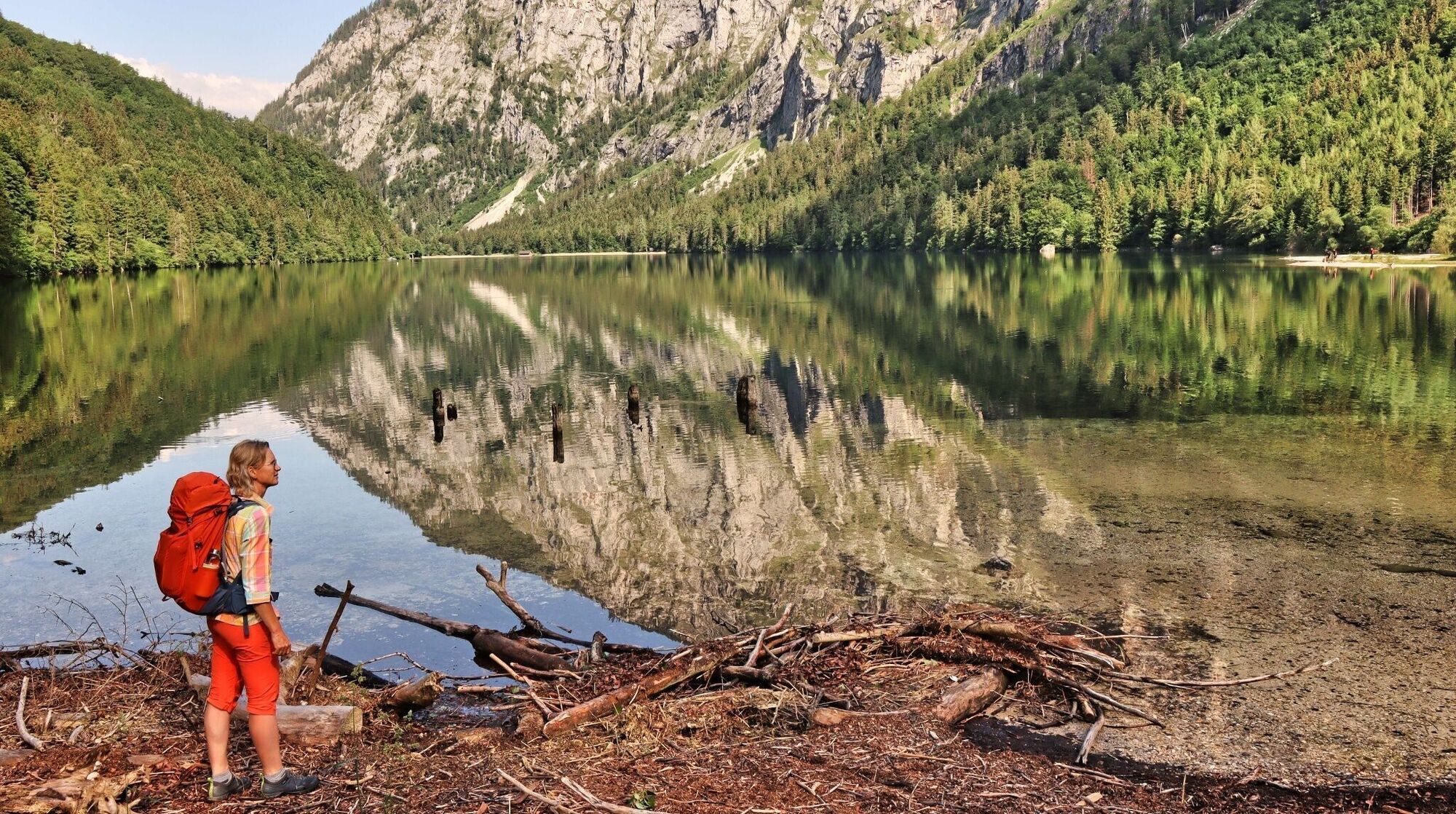 Von der historischen Bergbaustadt Eisenerz geht es zum ersten Highlight des Tages, dem Leopoldsteinersee, der mit seinem smaragdgrünen Wasser umgeben von steil aufragenden Felswänden ein beliebtes Ausflugsziel darstellt. Der Sage nach lebte in der Nähe des Sees ein Wassermann, der den Menschen mit dem Hinweis auf den Erzberg „… Eisen auf immerdar…“ versprach. Vom Leopoldsteinersee beginnt der Anstieg in die Bergwelt des Hochschwabmassivs. Mit jedem Höhenmeter tauchen wir in eine atemberaubende Landschaft aus schroffen Kalkwänden, weichen Almflächen mit urigen Hütten und vegetationsreichem Karstgebiet ein. Zudem wird das kompakte Hochschwabmassiv unweigerlich mit einem kostbaren Schatz in Verbindung gebracht: Trinkwasser bester Qualität, das nach Wien und Graz geleitet wird. Bitte beachten, dass diese Etappe alljährlich vom 15. September bis 15. Oktober zu umgehen ist ist, da die Sonnschienhütte aufgrund der Jagdsperre nicht geöffnet hat.