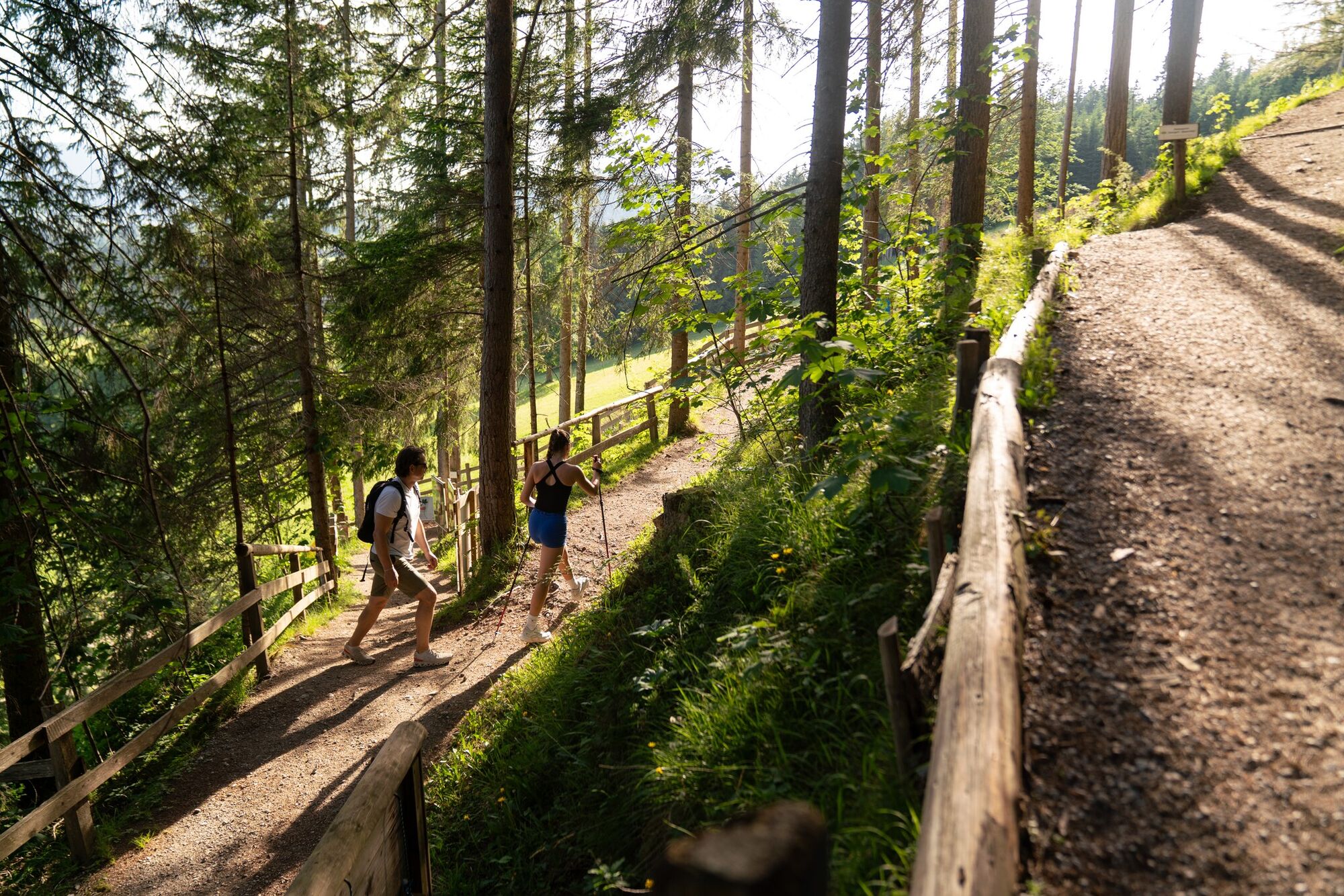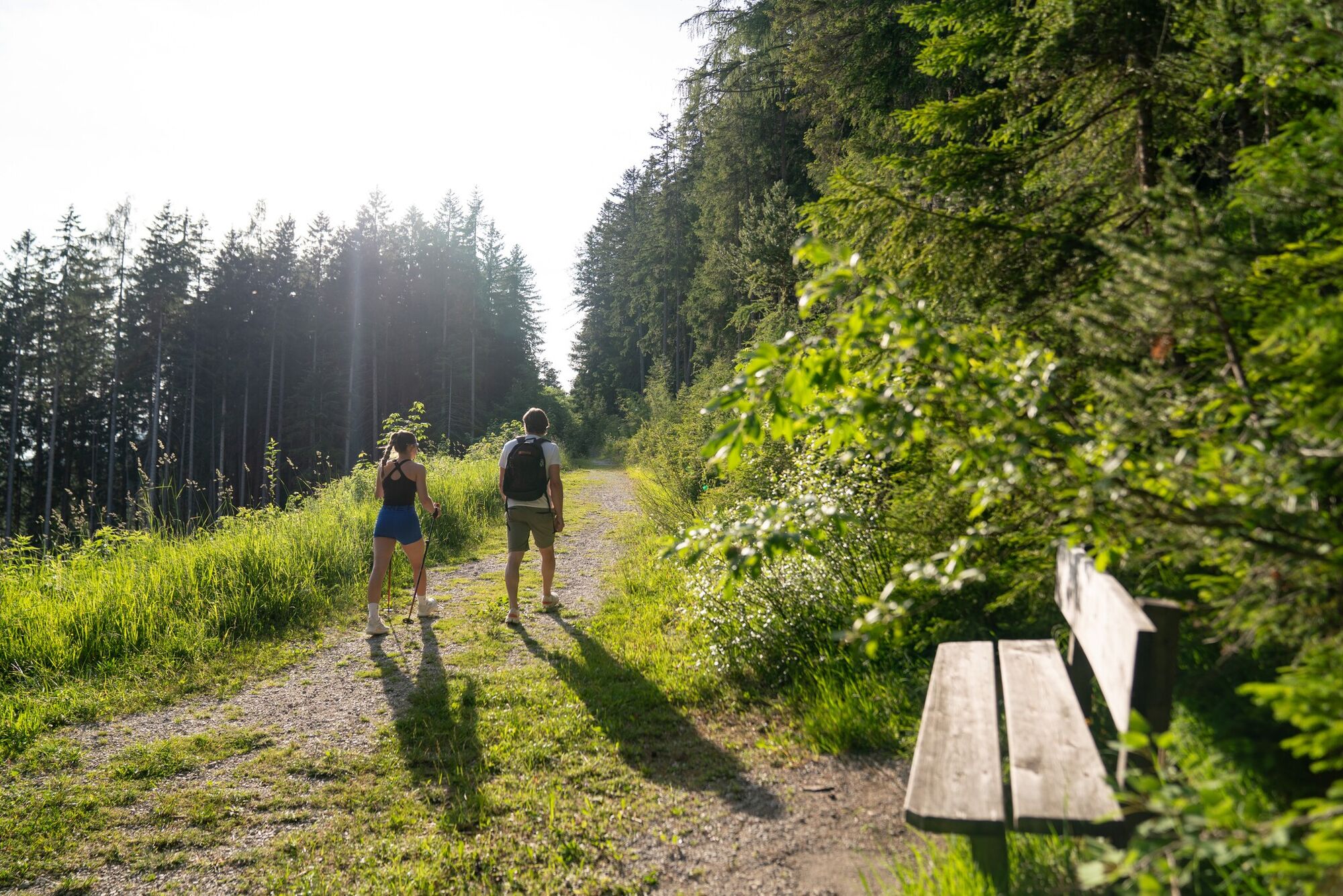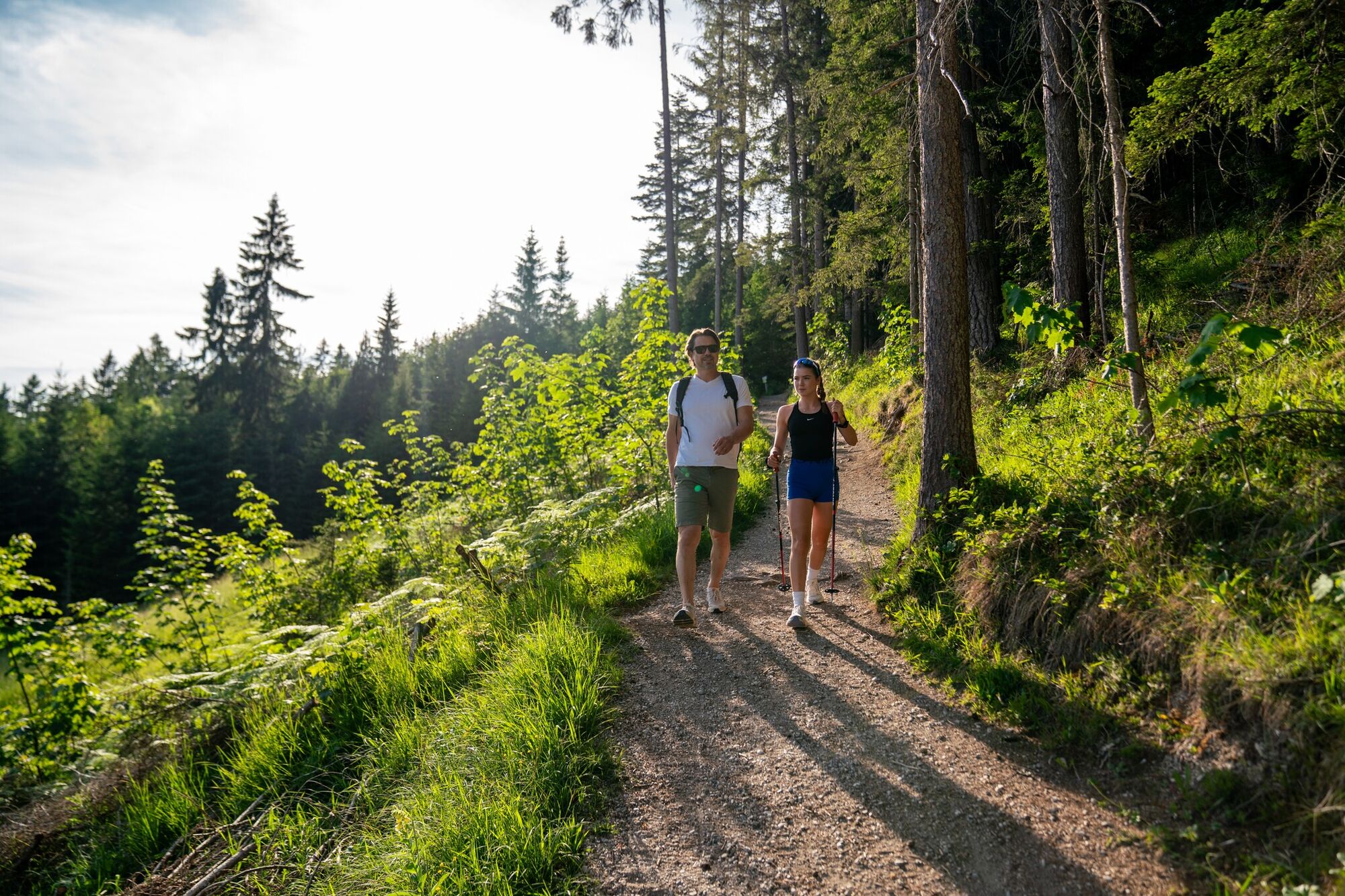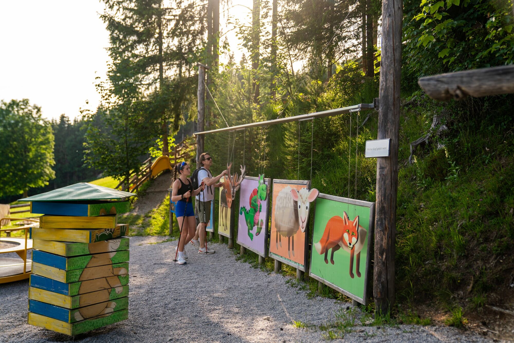 Vom Parkplatz in der Oberen Leiten gehst Du nach Osten, vorbei am Mountain Hostel und der Pension Concordia zum Startpunkt des Umwelt- und Naturlehrpfades, wo Dich Kali der Ramsaurier in seiner ganzen Größe begrüßt. Nun wanderst Du östlich bergab durch den Wald weiter, wo Dich der kinderwagentaugliche Teil des Rundweges entlang einiger Stationen zur Sattelberghütte bringt. Zurück geht es auf dem selben Weg bzw. entlang einer weiteren kinderwagentauglichen Schleife.