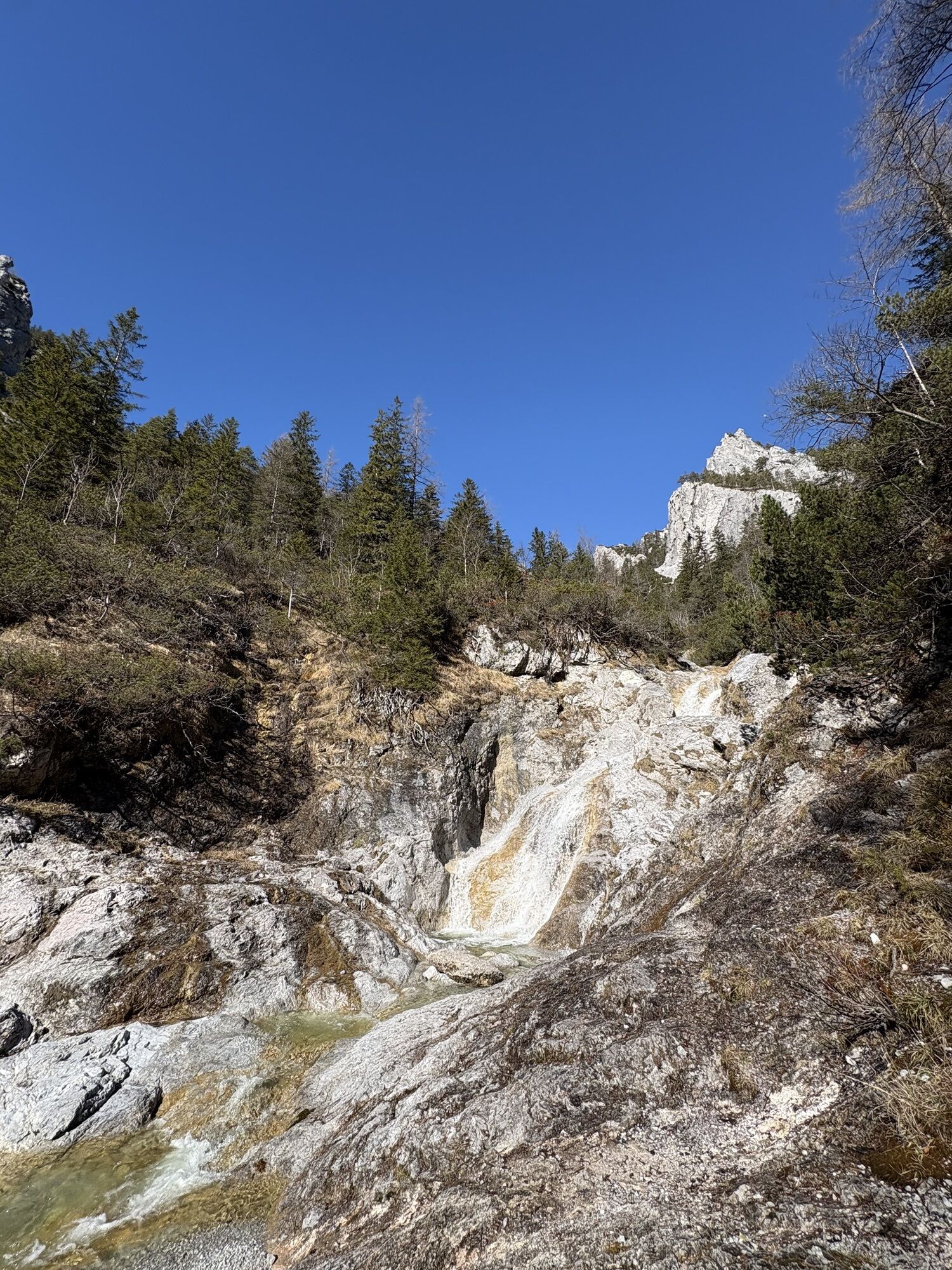 Nach dem Abstieg durch den Karlgraben laden im Sommer sehr schöne Felsgumpen am oberen Ende der Karlschütt zu einem kühl-erfrischenden Bad.