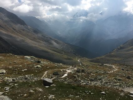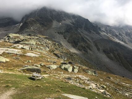Am Gipfel Weg Nr. 25a zum Absteigen benutzen. Hier ist an einigen Stellen Teittsicherheit in unwegsamen Gelände erforderlich. Auf etwa 2.700m lädt die Düsseldorfer Hütte mit einem herrlichen Panoramablick auf die Ortlergruppe zum Pausieren ein. Von dort aus kann über Weg Nr.5 direkt nach Sulden zum Startpunkt abgestiegen, ein Stück weit abgestiegen und an einer Kreuzung mit Weg Nr. 14a noch zur Kanzel gequert werden oder direkt von der Düsseldorfer Hütte über Weg Nr. 12 zur Kanzel gewandert und von dort aus abgestiegen werden.
